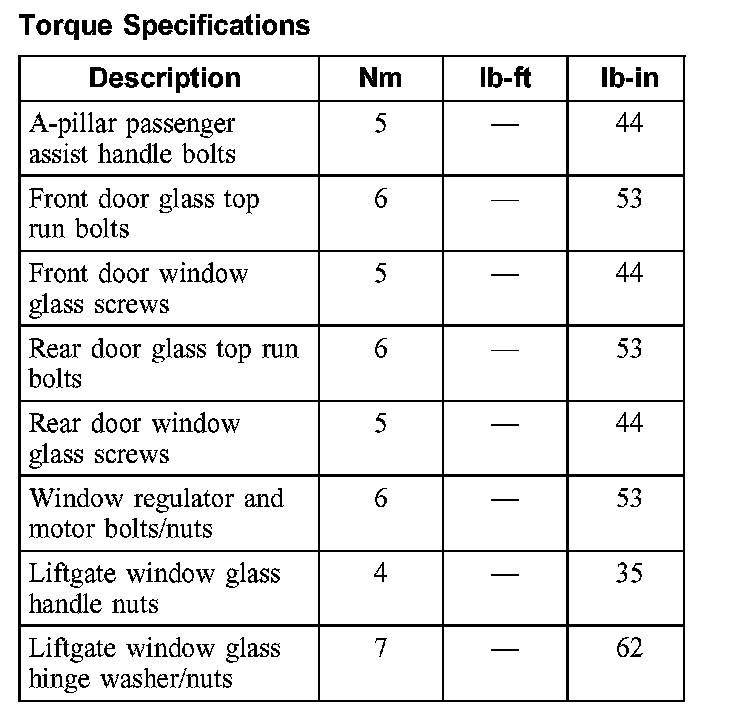 Torque Specifications: