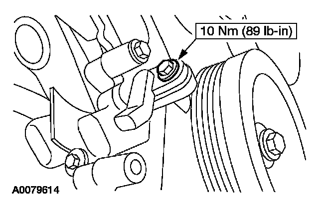 Loosen the bolts enough for the compressor to slide down one inch, allowing access for crankshaft position (CKP) sensor removal.