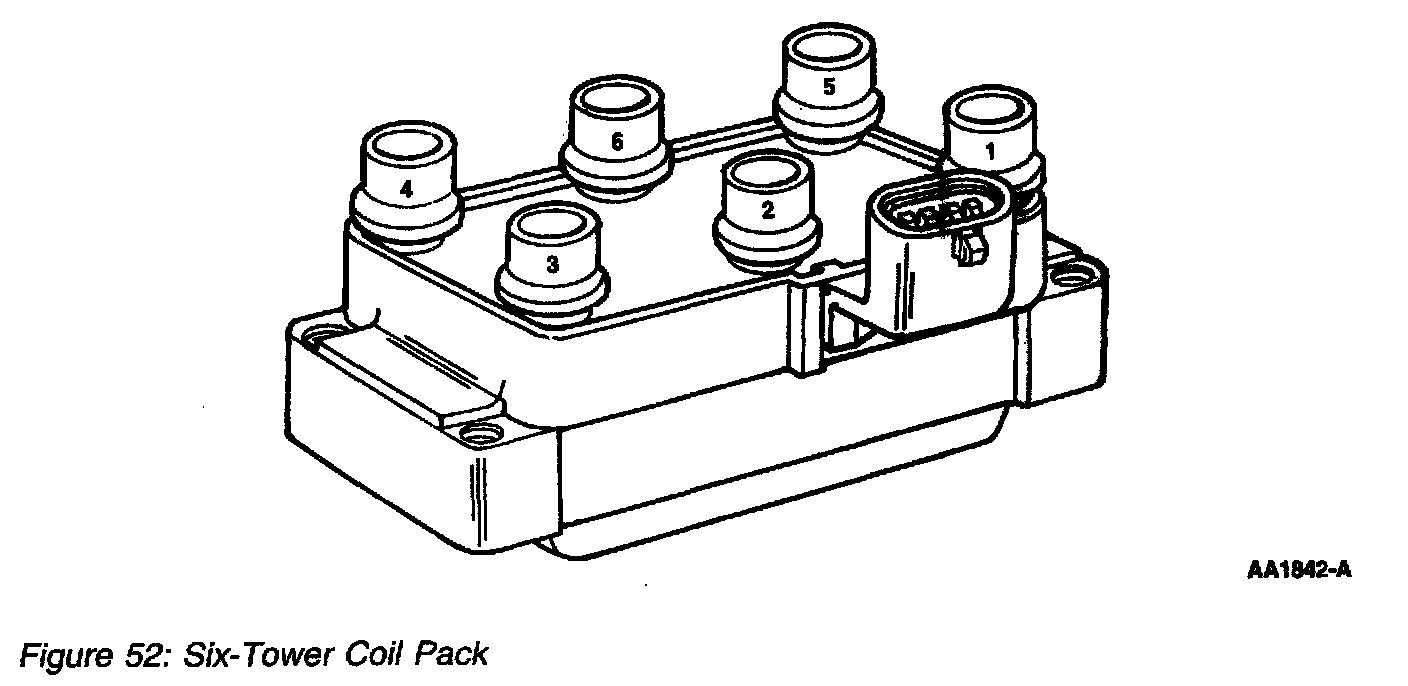 The PCM provides a grounding switch for the coil primary circuit. When the switch is closed, voltage is applied to the coil primary circuit. This creates a magnetic field around the primary coil. The PCM opens the switch, causing the magnetic field to collapse, inducing the high voltage in the secondary coil windings and firing the spark plug. The spark plugs are paired so that as one spark plug fires on the compression stroke, the other spark plug fires on the exhaust stroke. The next time the coil is fired the order is reversed. The next pair of spark plugs fire according to the engine firing order.