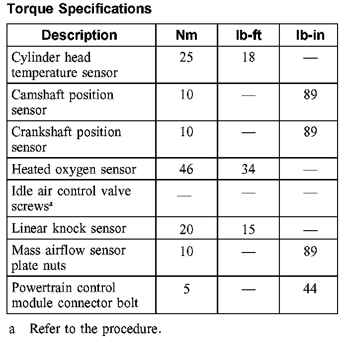 Torque Specifications: