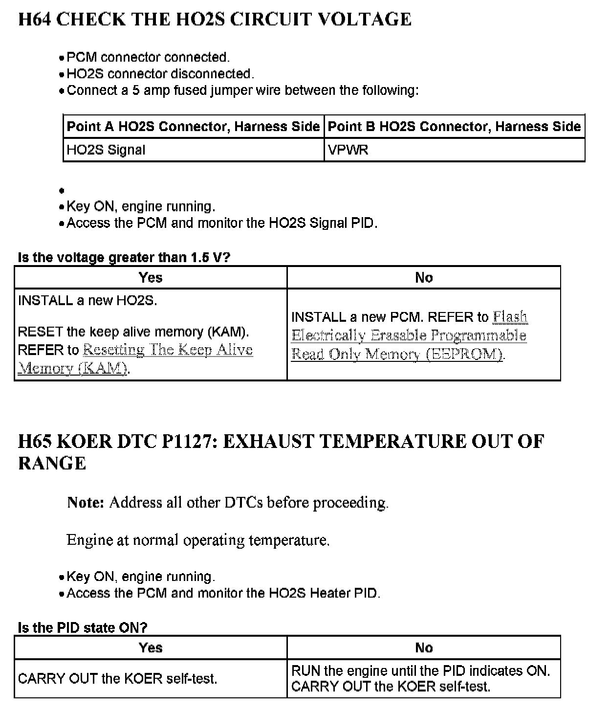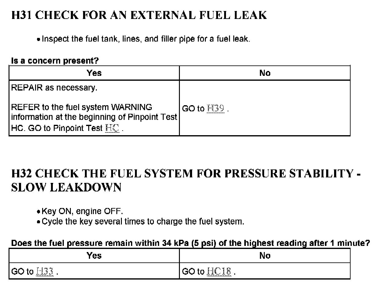 Home >> Ford >> 2005 >> Excursion 2WD V10-6.8L VIN S >> Repair and Diagnosis >> Powertrain Management >> Computers and Control Systems >> Testing and Inspection >> Pinpoint Tests >> Test H: Fuel Control