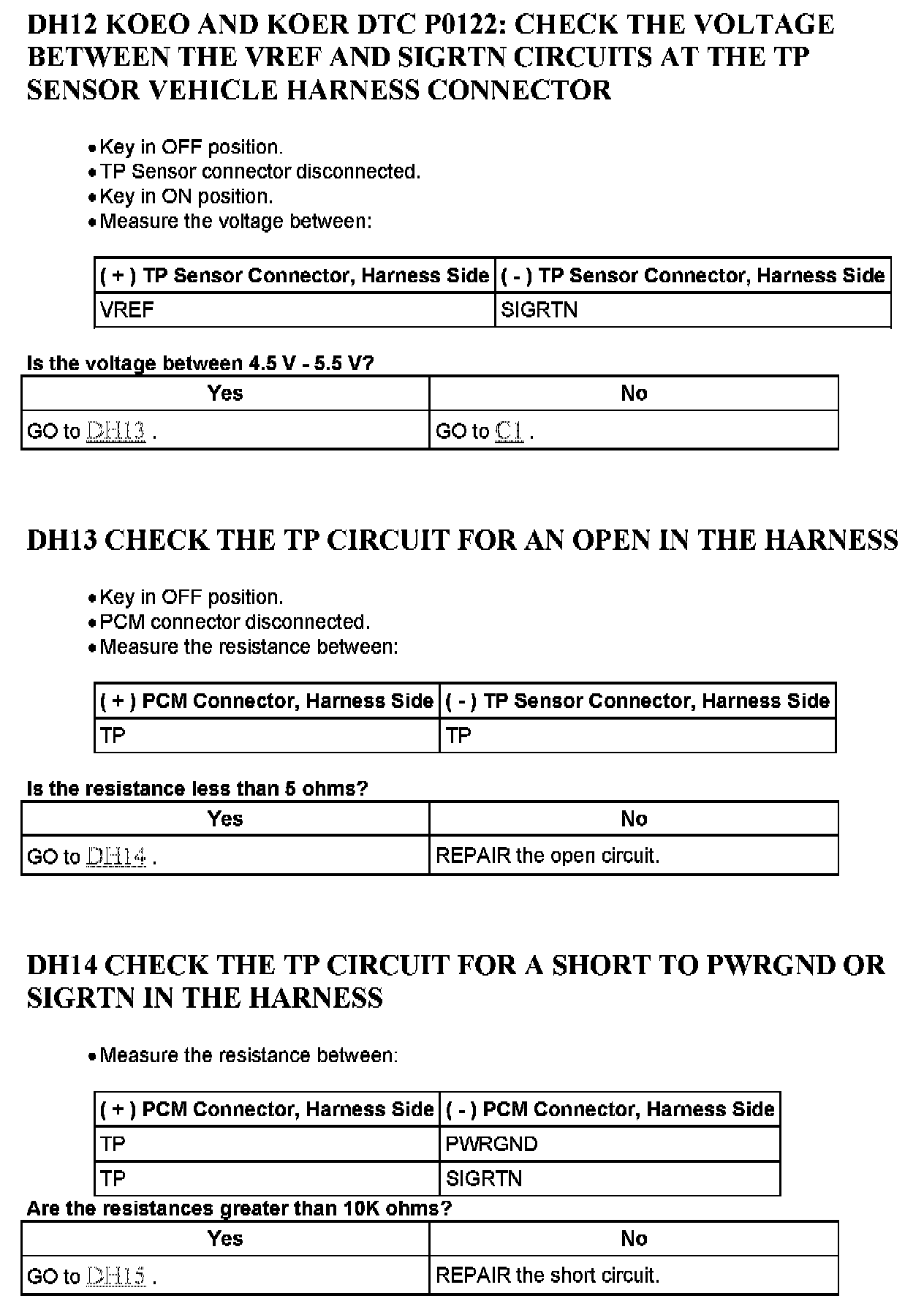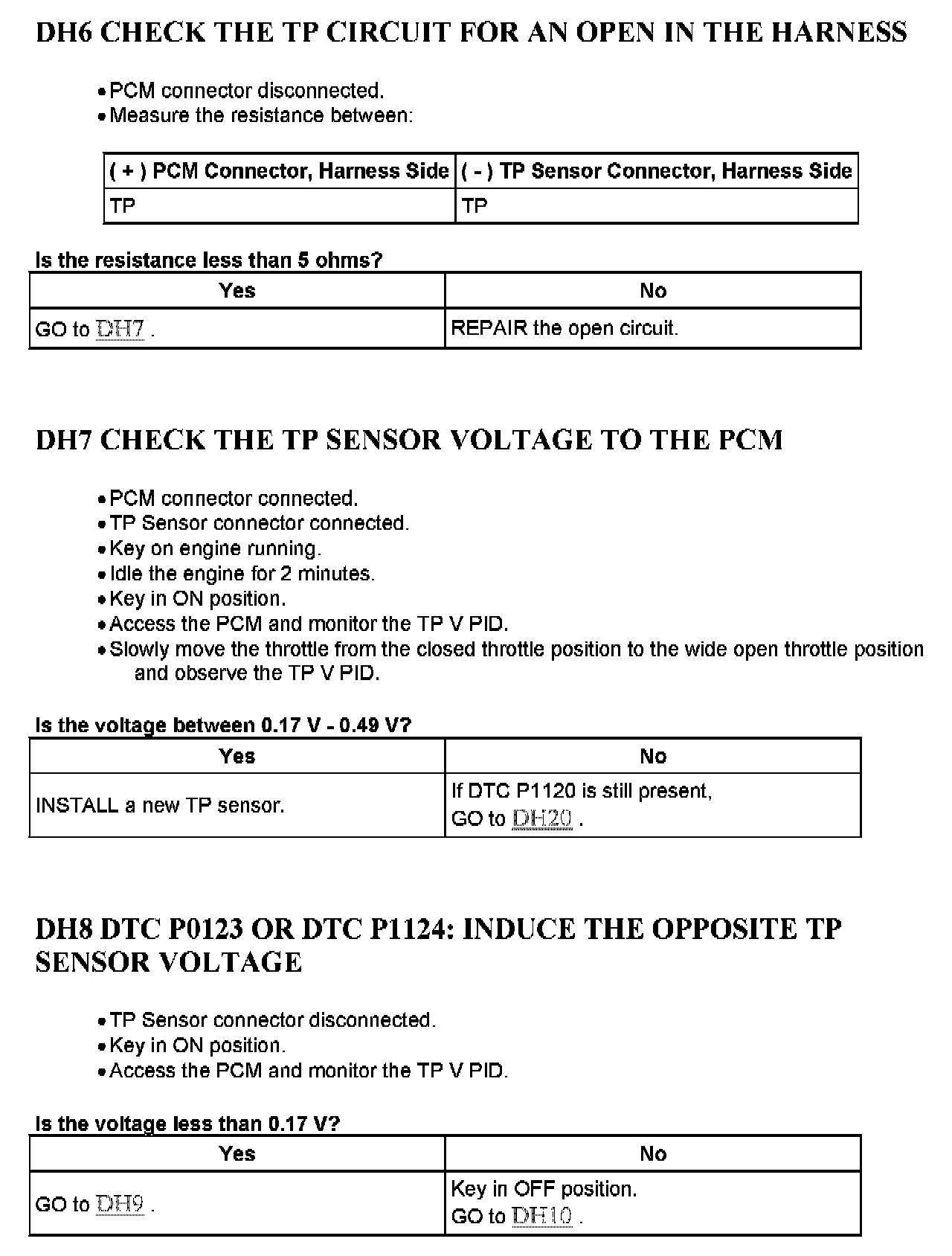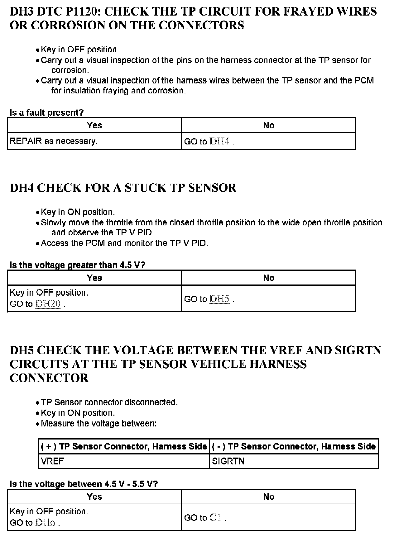 Tests DH: Throttle Position (TP) Sensor