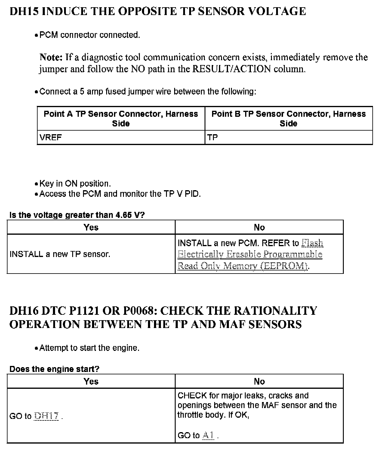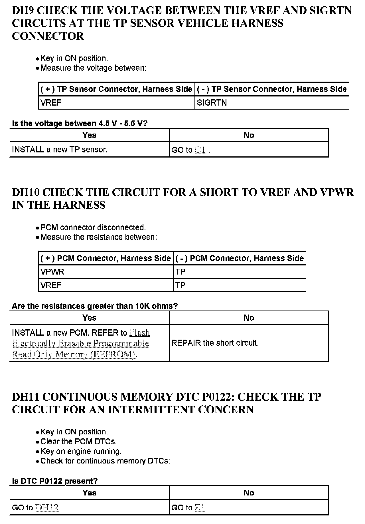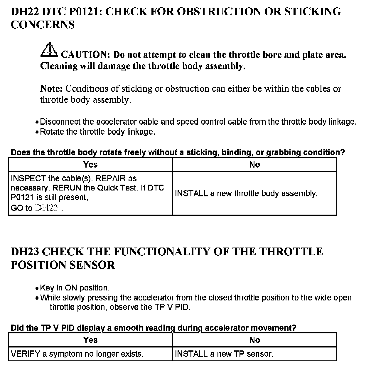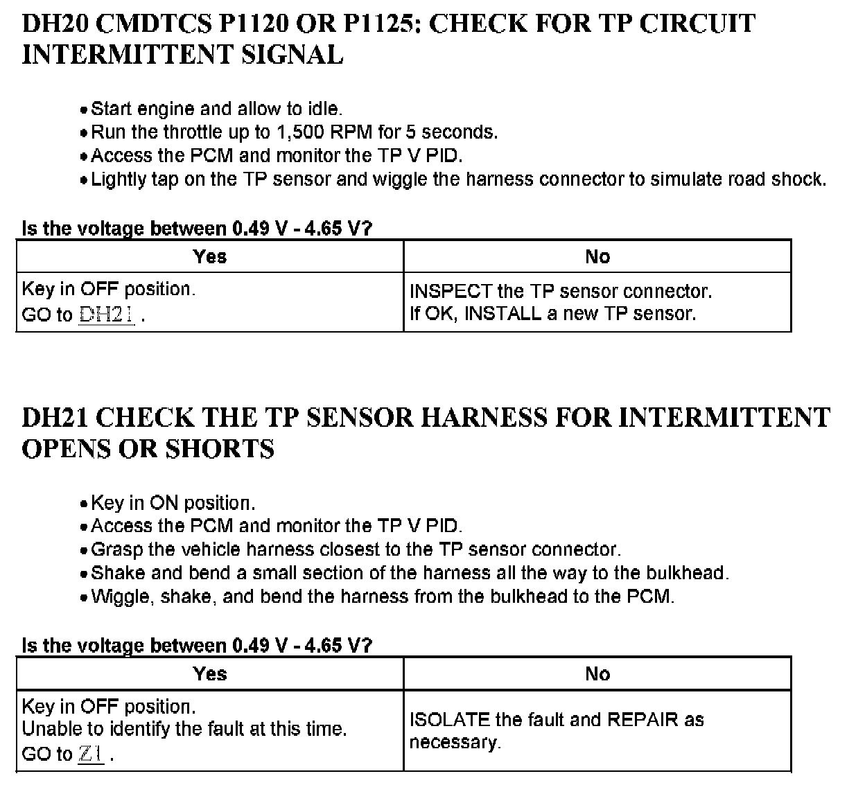 Tests DH: Throttle Position (TP) Sensor
