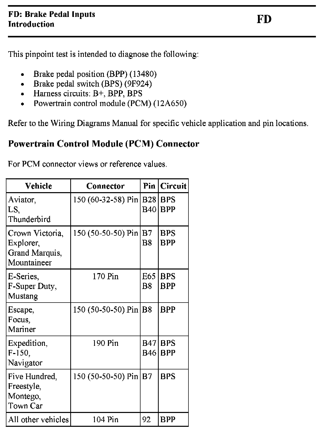 PINPOINT TEST FD: BRAKE PEDAL INPUTS