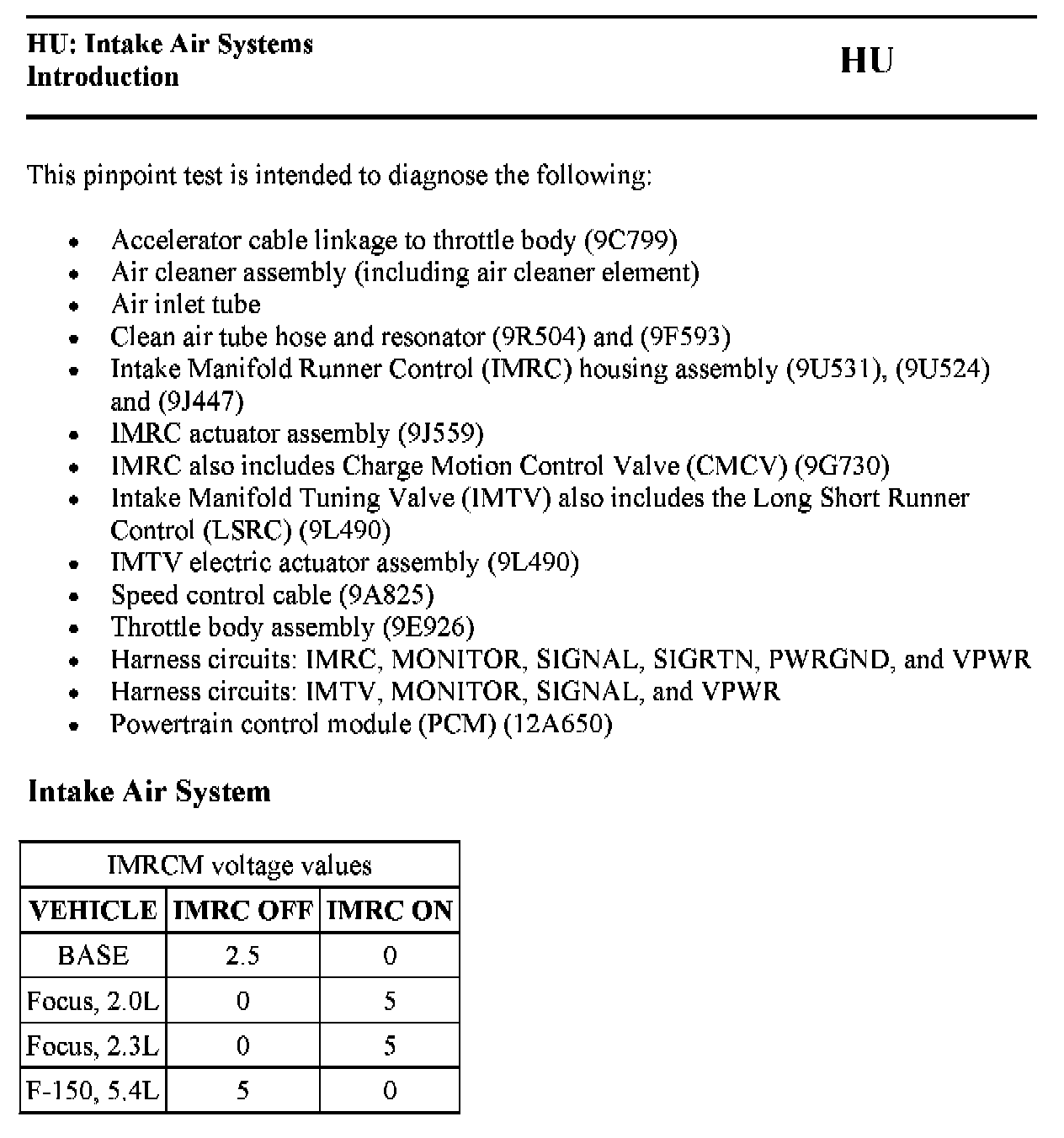 PINPOINT TEST HU: INTAKE AIR SYSTEMSHU Introduction: