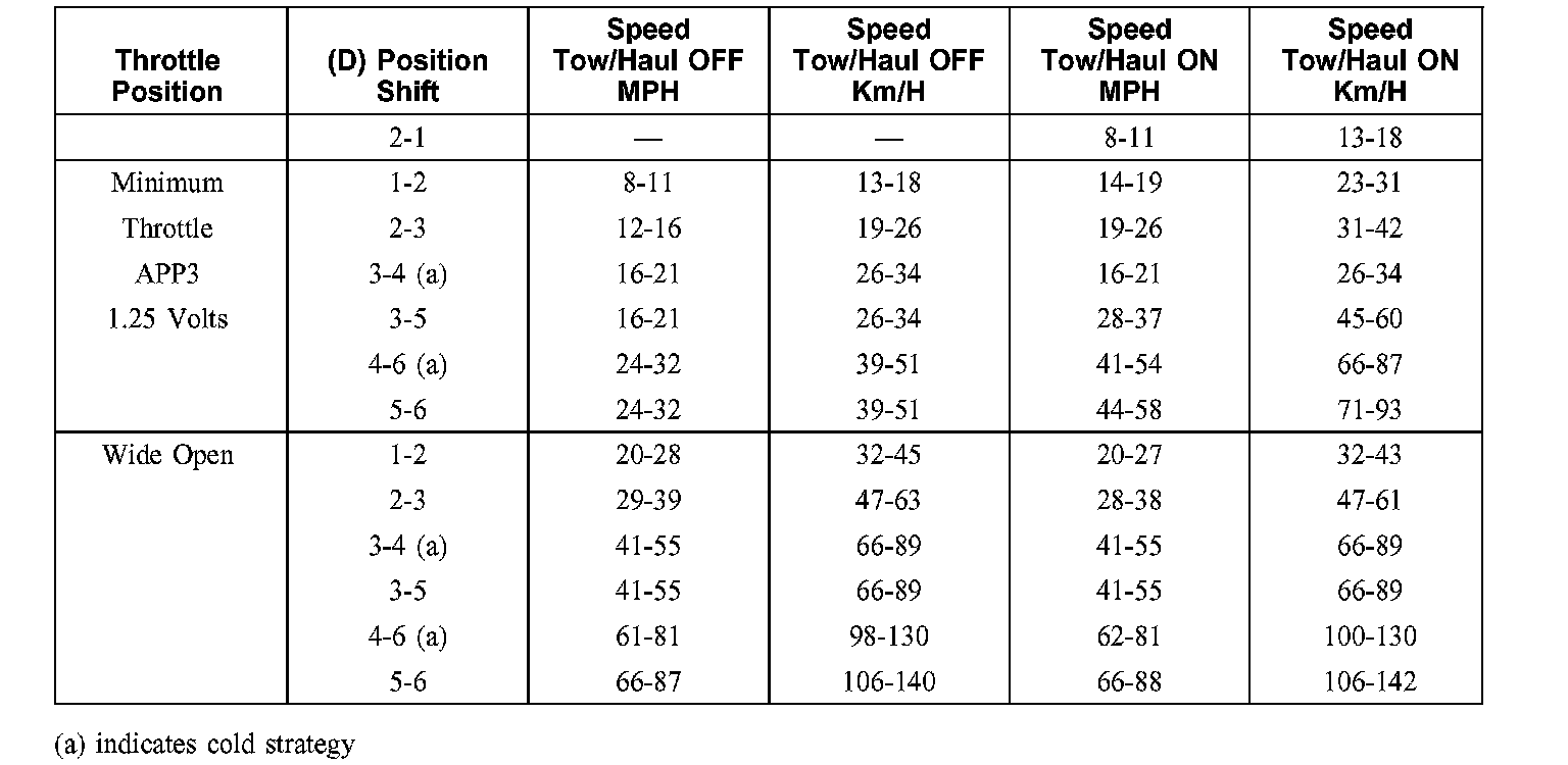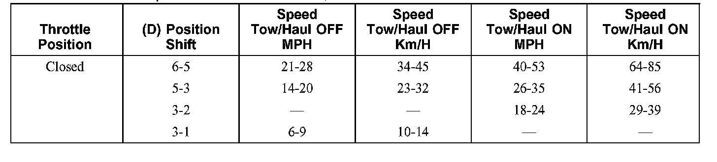 All shift speeds are for normal mode, not with tow/haul ON.