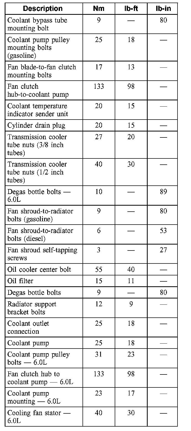 Torque Specifications