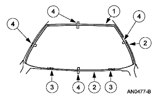 7. NOTE: If reinstalling the removed windshield glass, complete this step and go to step 10. If installing a new windshield glass, skip step 7 and go to step 8.