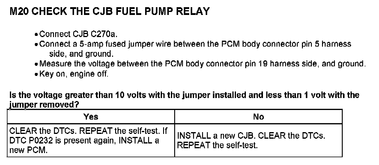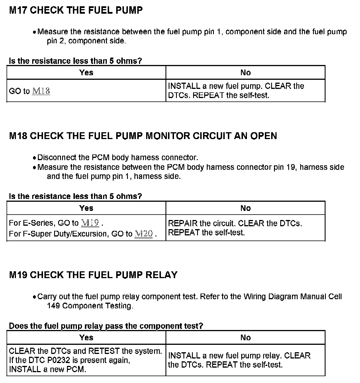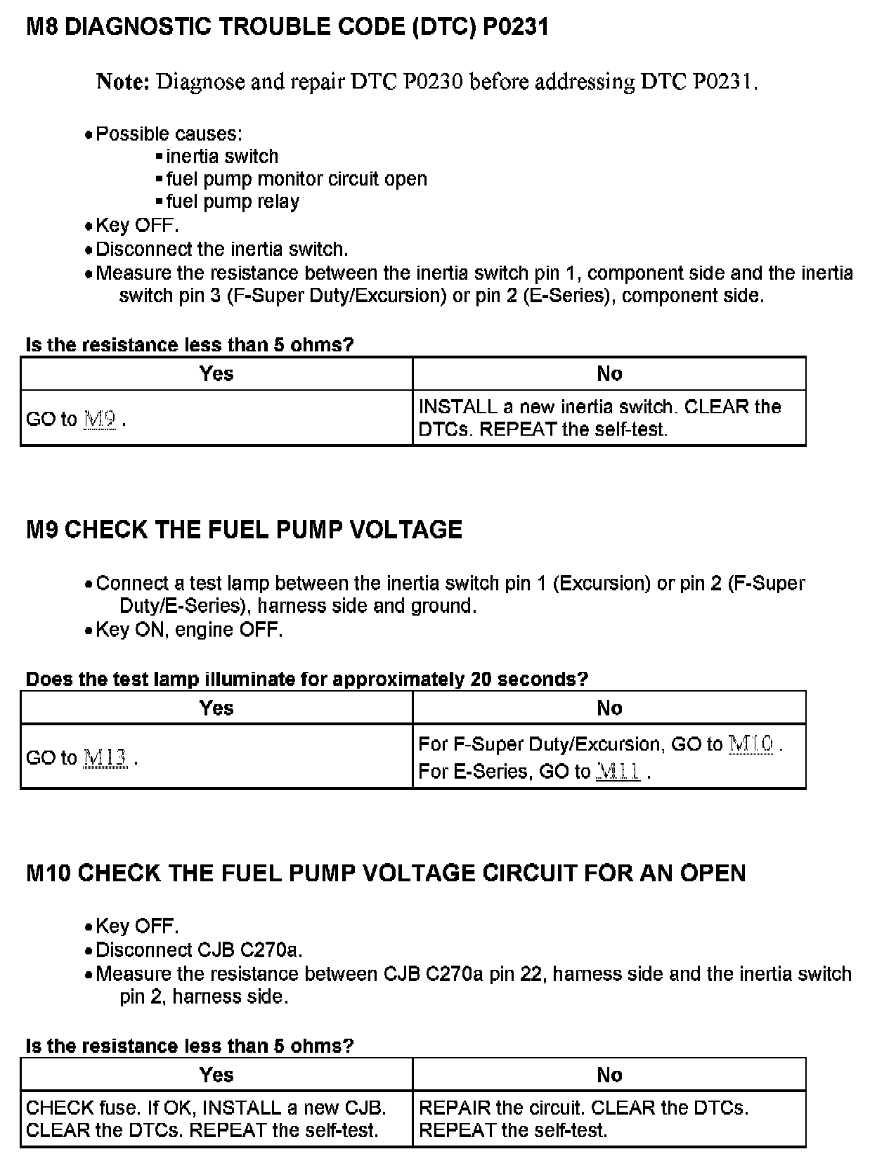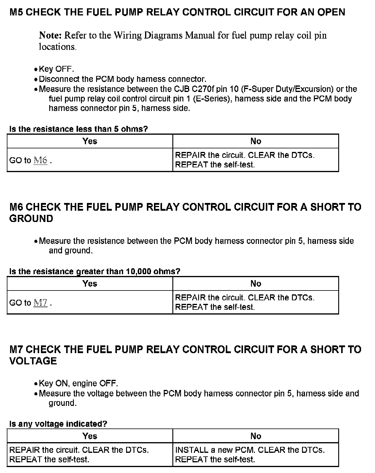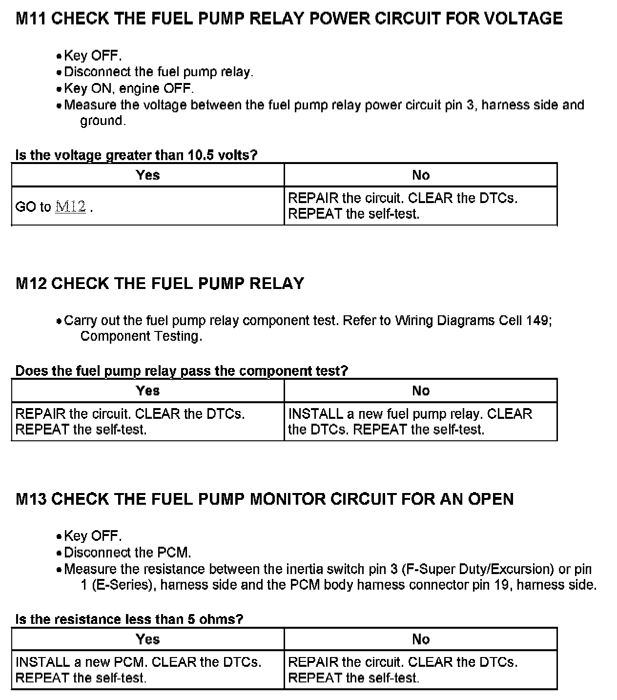 PINPOINT TEST M: FUEL PUMP MONITOR/CONTROL