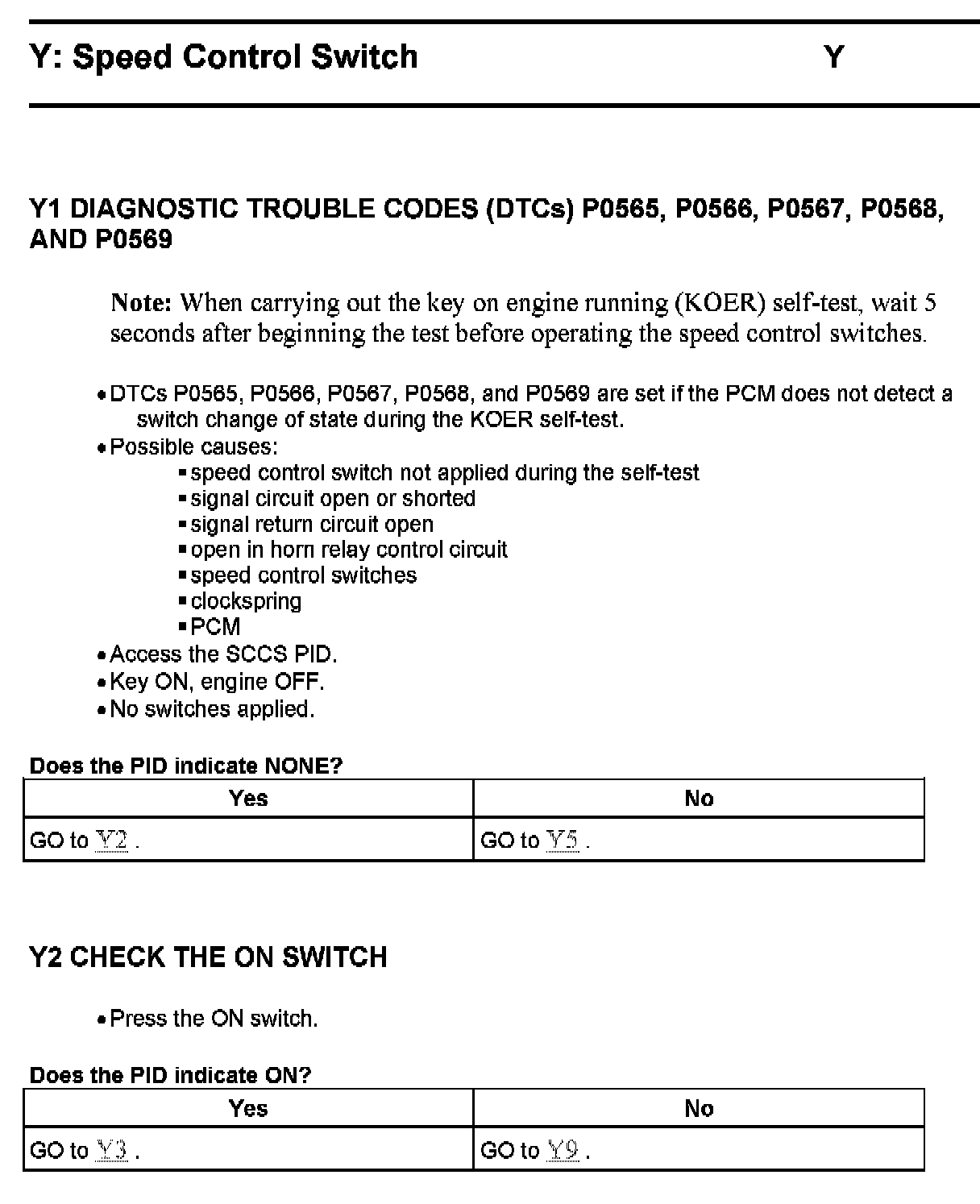 PINPOINT TEST Y: SPEED CONTROL SWITCH
