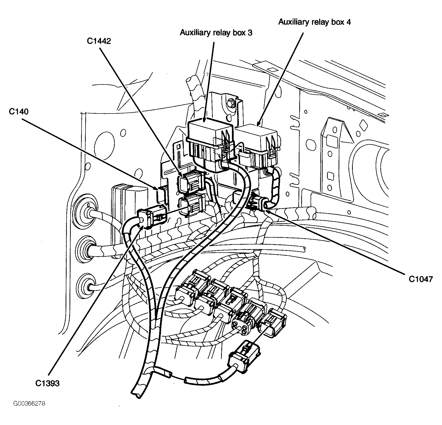 Auxiliary Relay Box 4 At left rear side of engine compartment. See Figure.