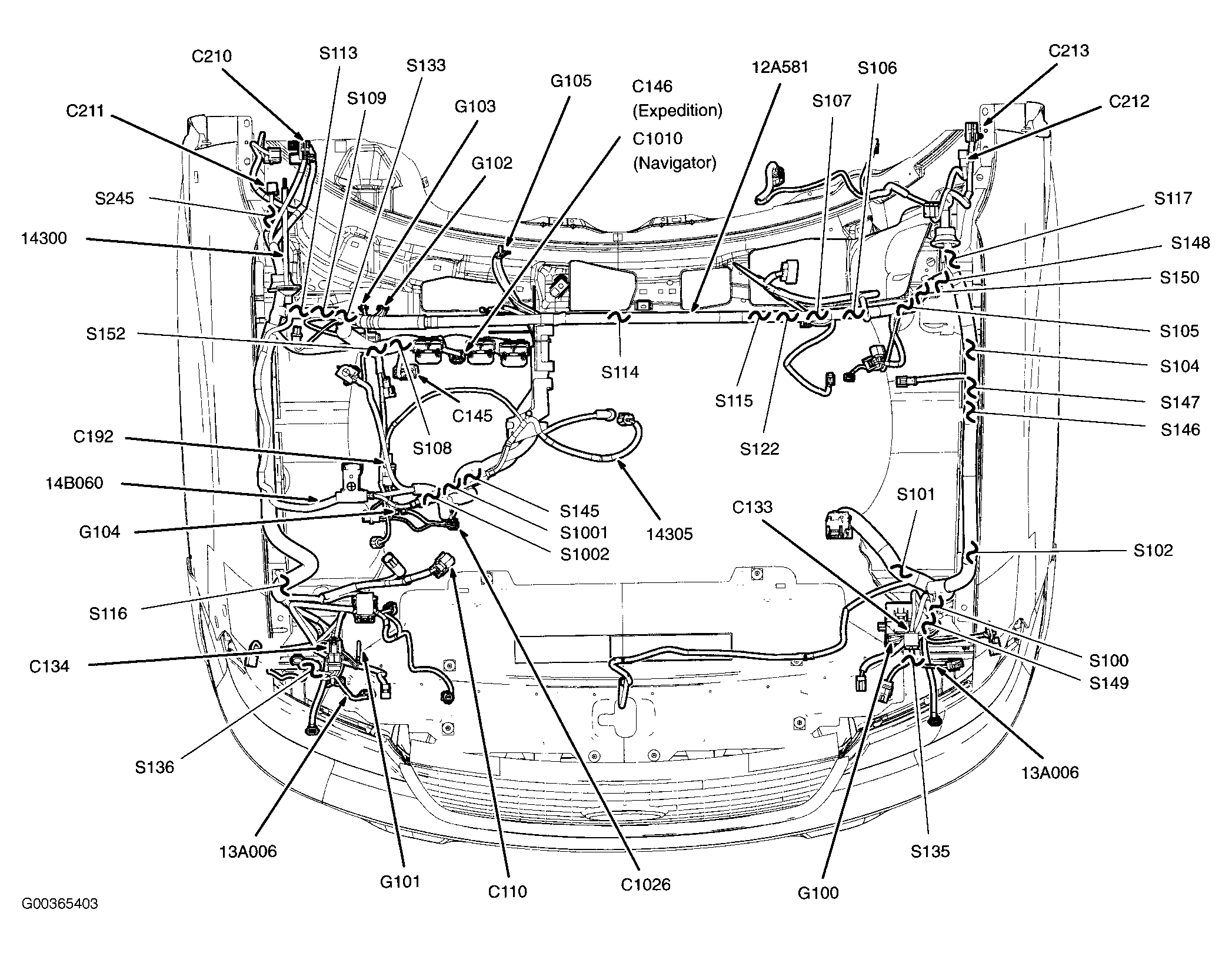| S146 | In engine control sensor harness, near breakout to left side of engine compartment. See Figure. |