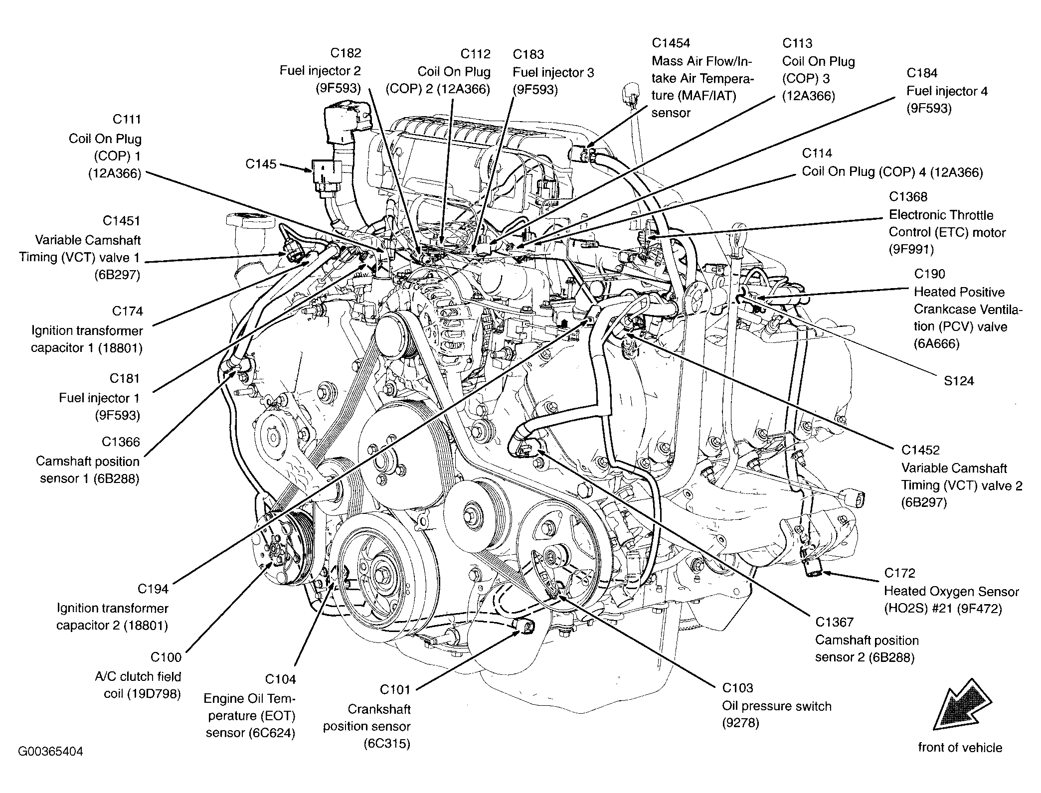 | S101 | In engine control sensor harness, in breakout to left side of engine compartment. See Figure. |