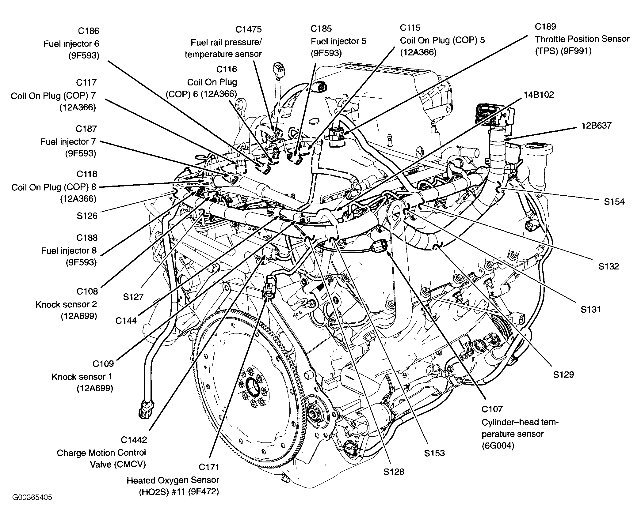 | S126 | In engine control sensor & fuel charge harness, near breakout to left cylinder head. See Figure. |