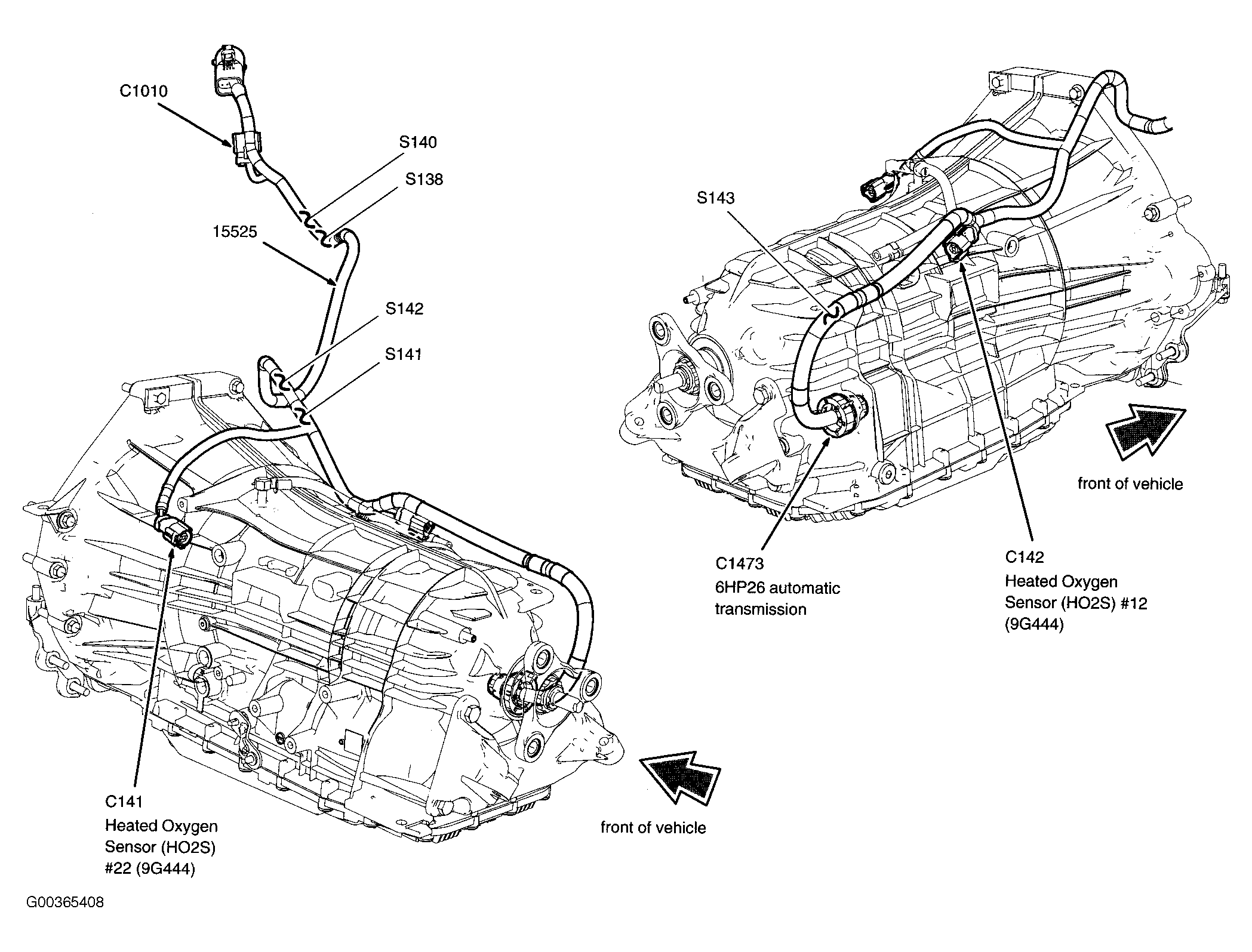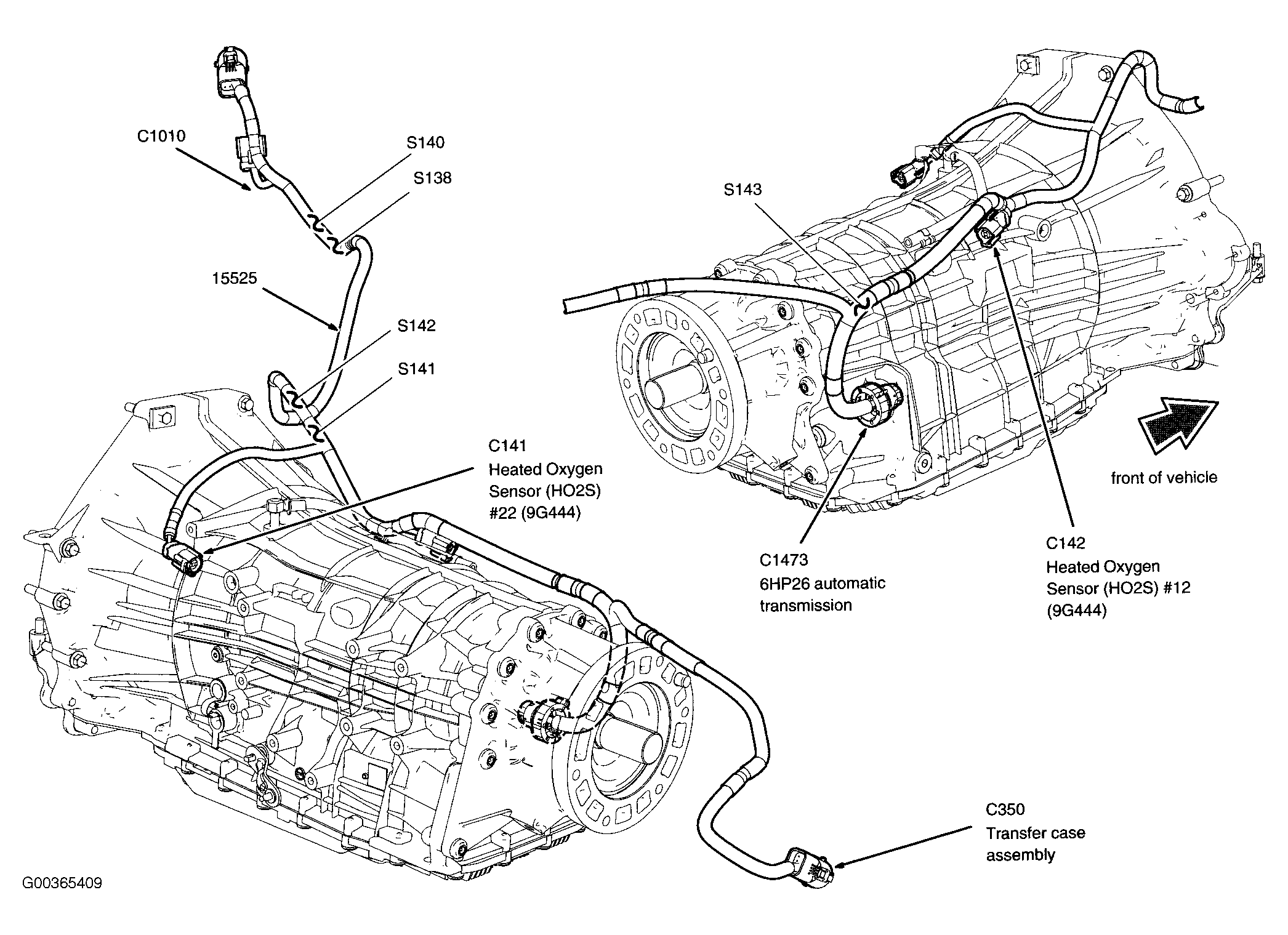 | S140 (6HP26 W/O 4WD) | In back-up lamp switch to rear lamp feed harness, near breakout to right side of firewall. See Figure. |
