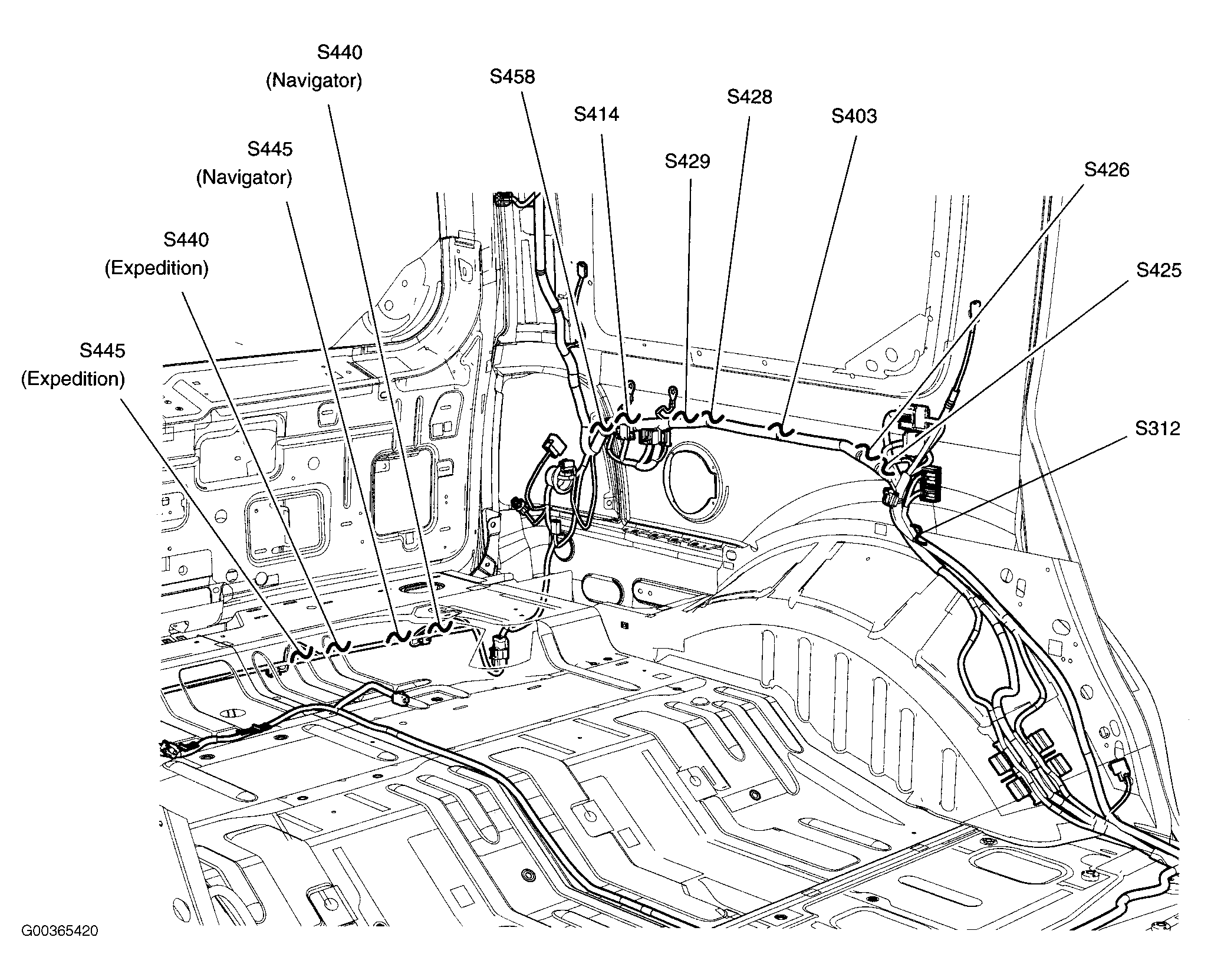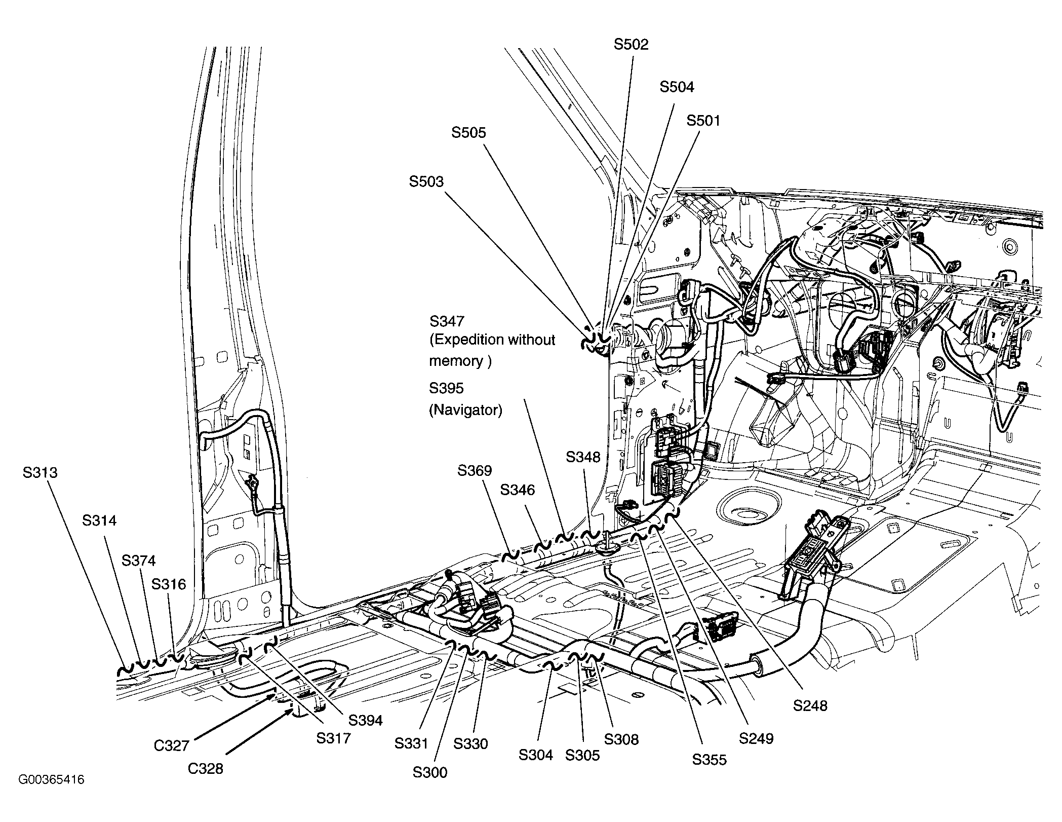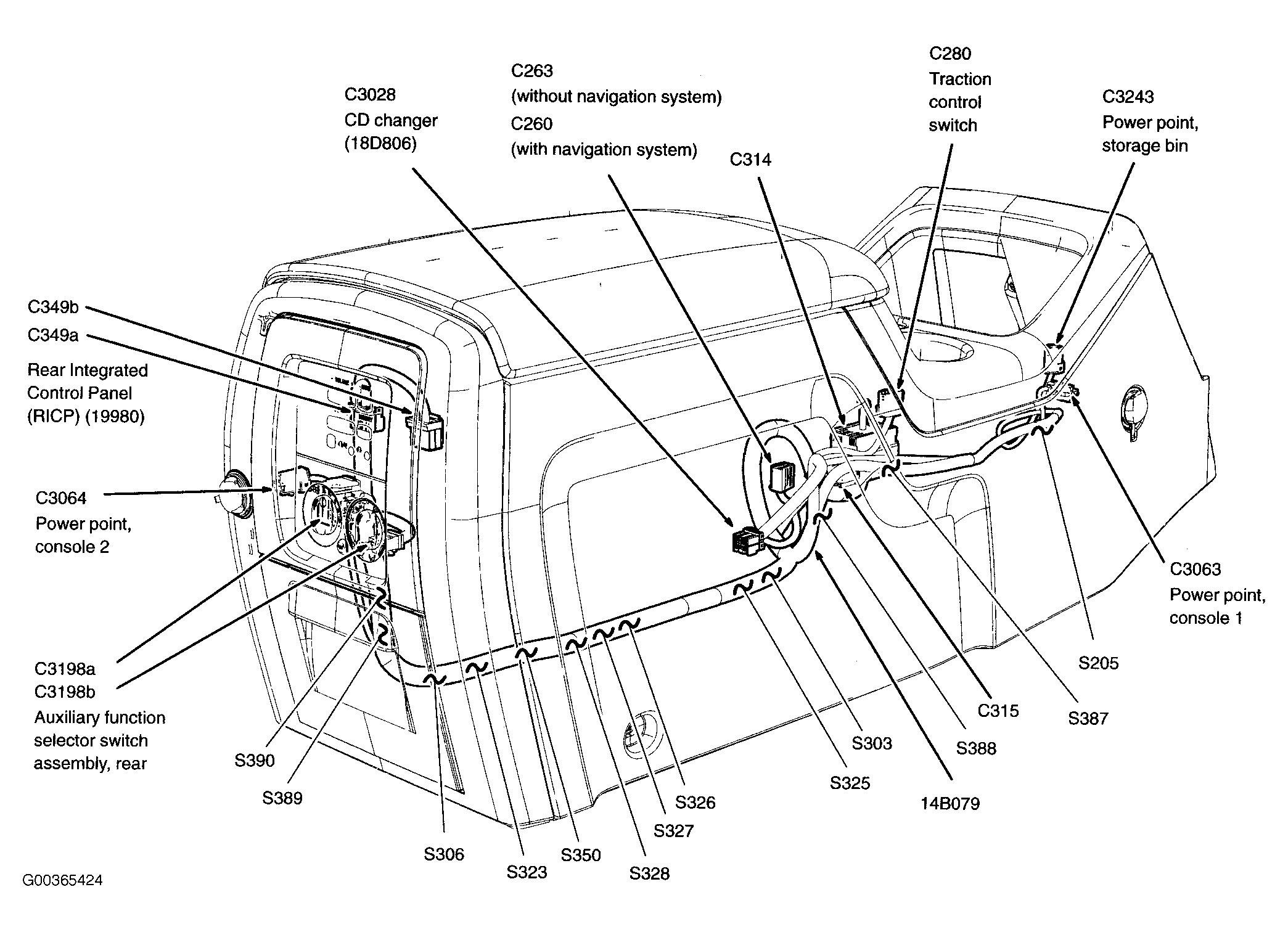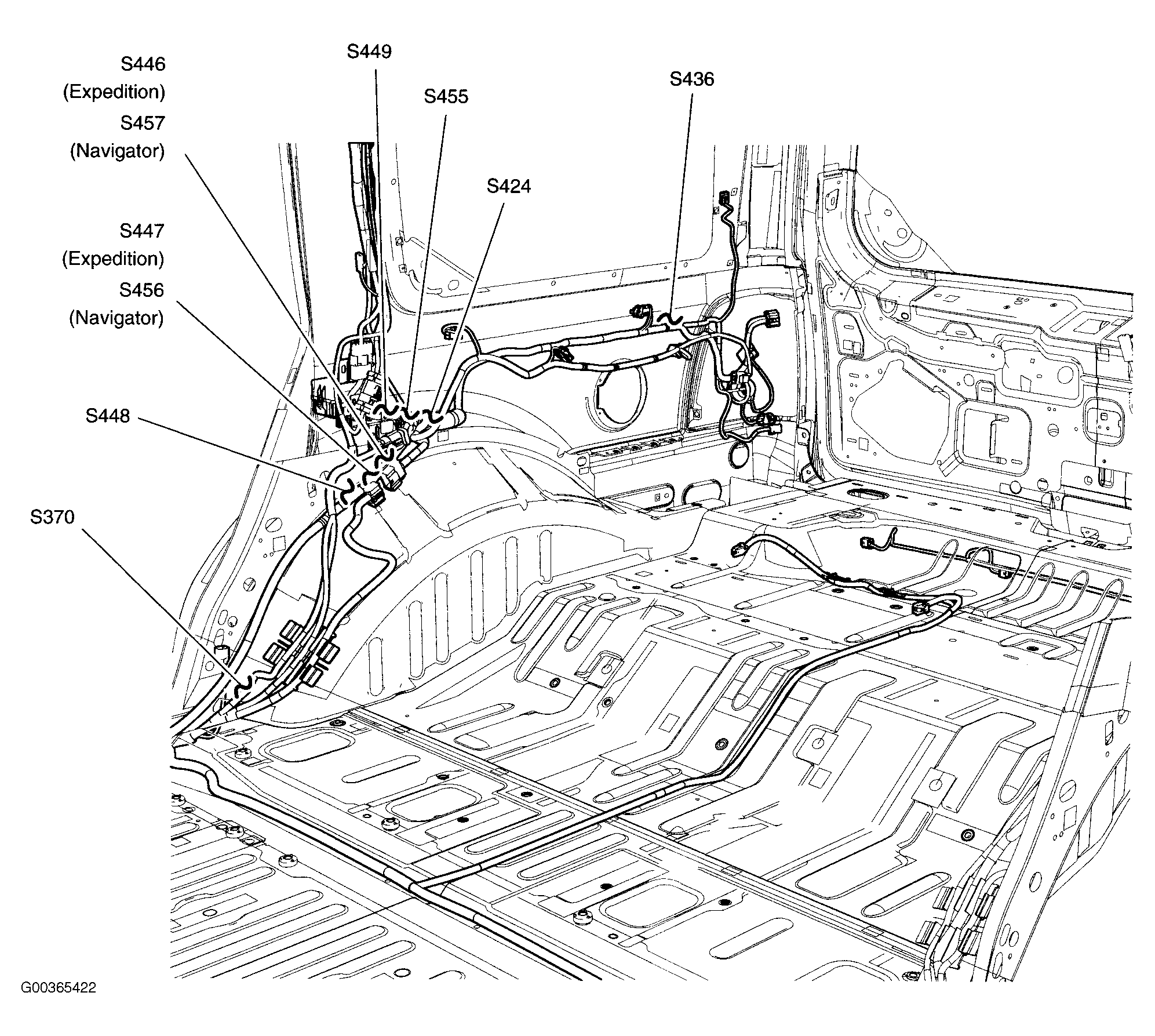 | S389 (Expedition) | In console panel harness, near breakout to center console. See Figure. |