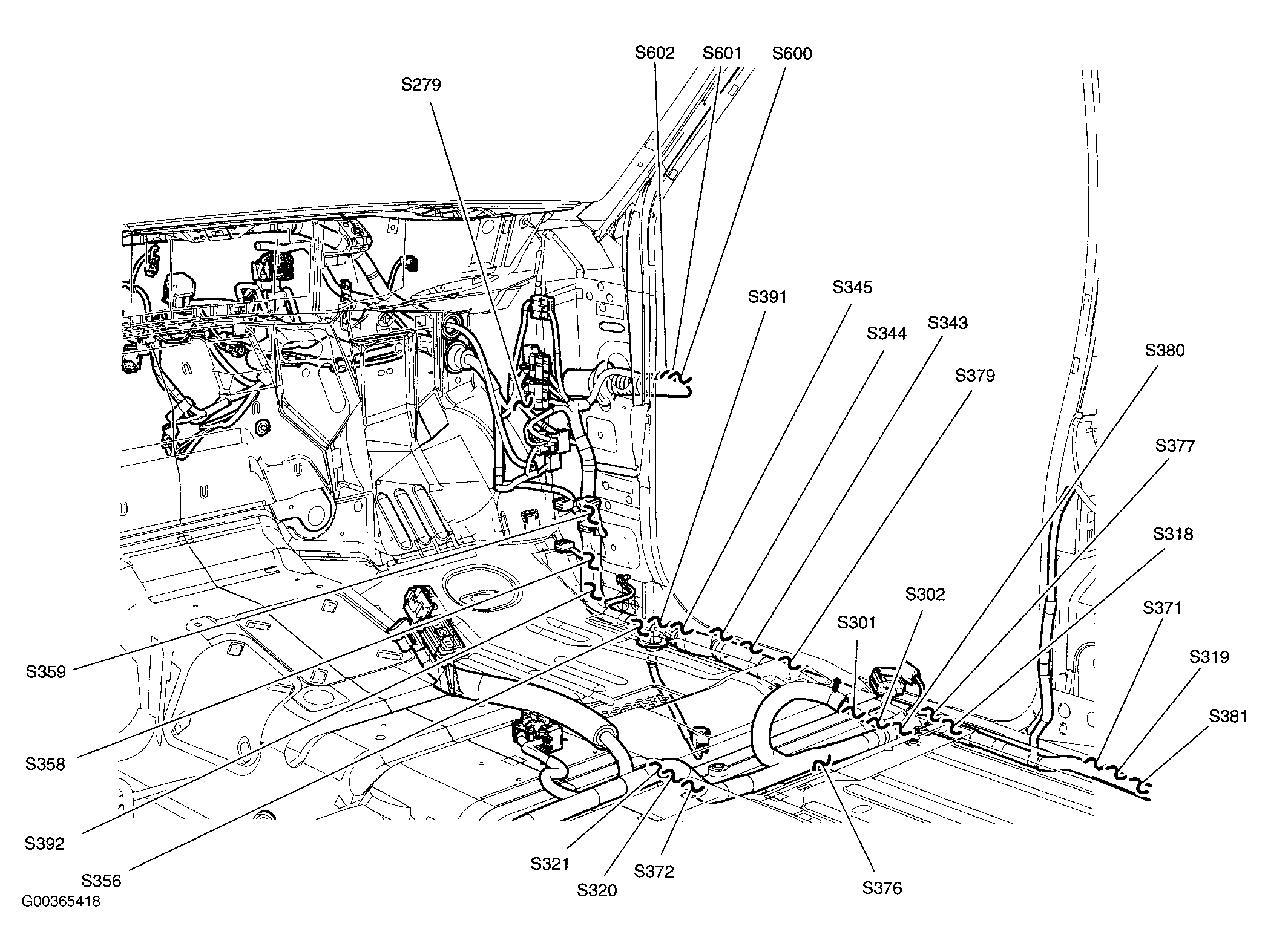 | S372 | In body main harness, near breakout under center console. See Figure. |