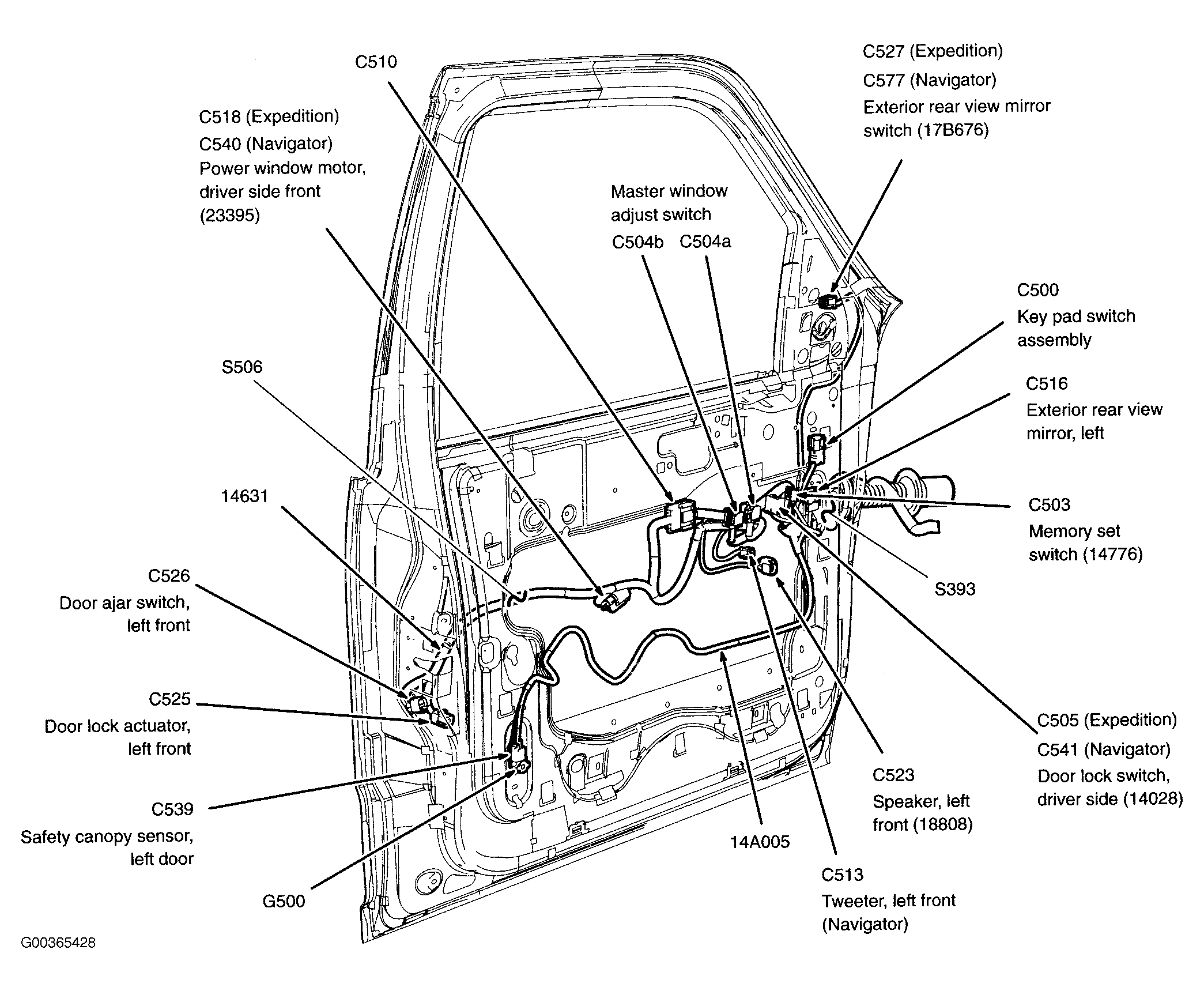 | S501 | In body main harness, near breakout to left front door. See Figure. |