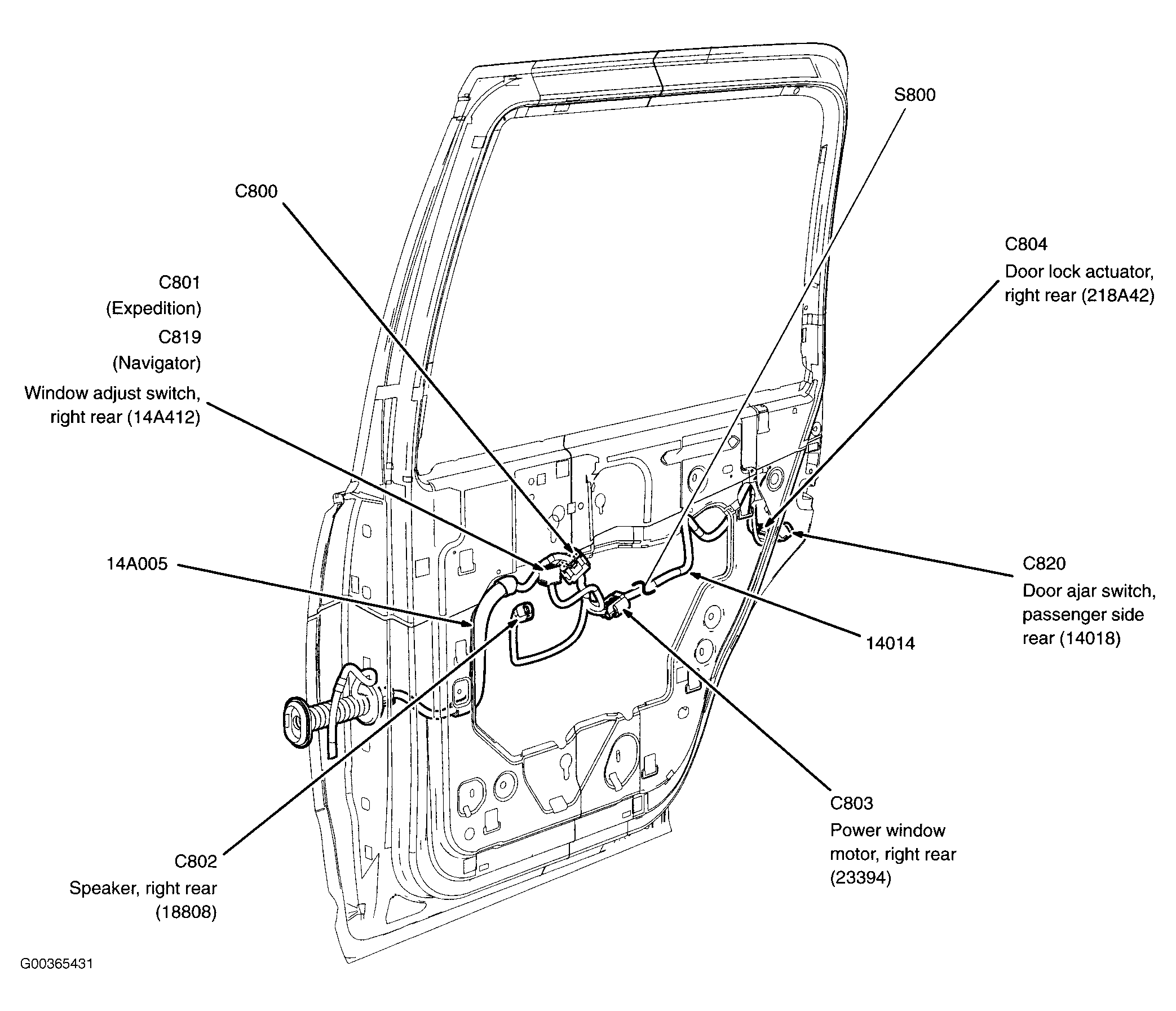 | S465 | In right rear window regulator control switch & wiring assembly, near breakout to liftgate. See Figure. |