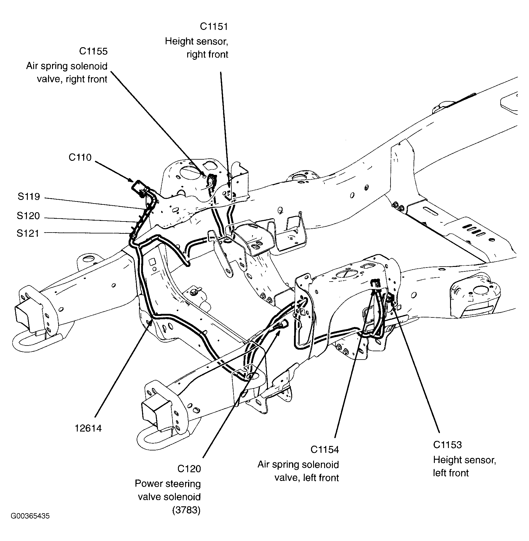 | S119 | In air spring suspension pressure indicator switch harness, in breakout to C110. See Figure. |