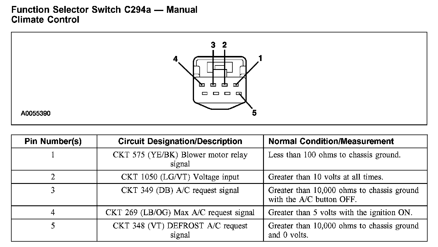Function Selector Switch C294a - Manual Climate Control: