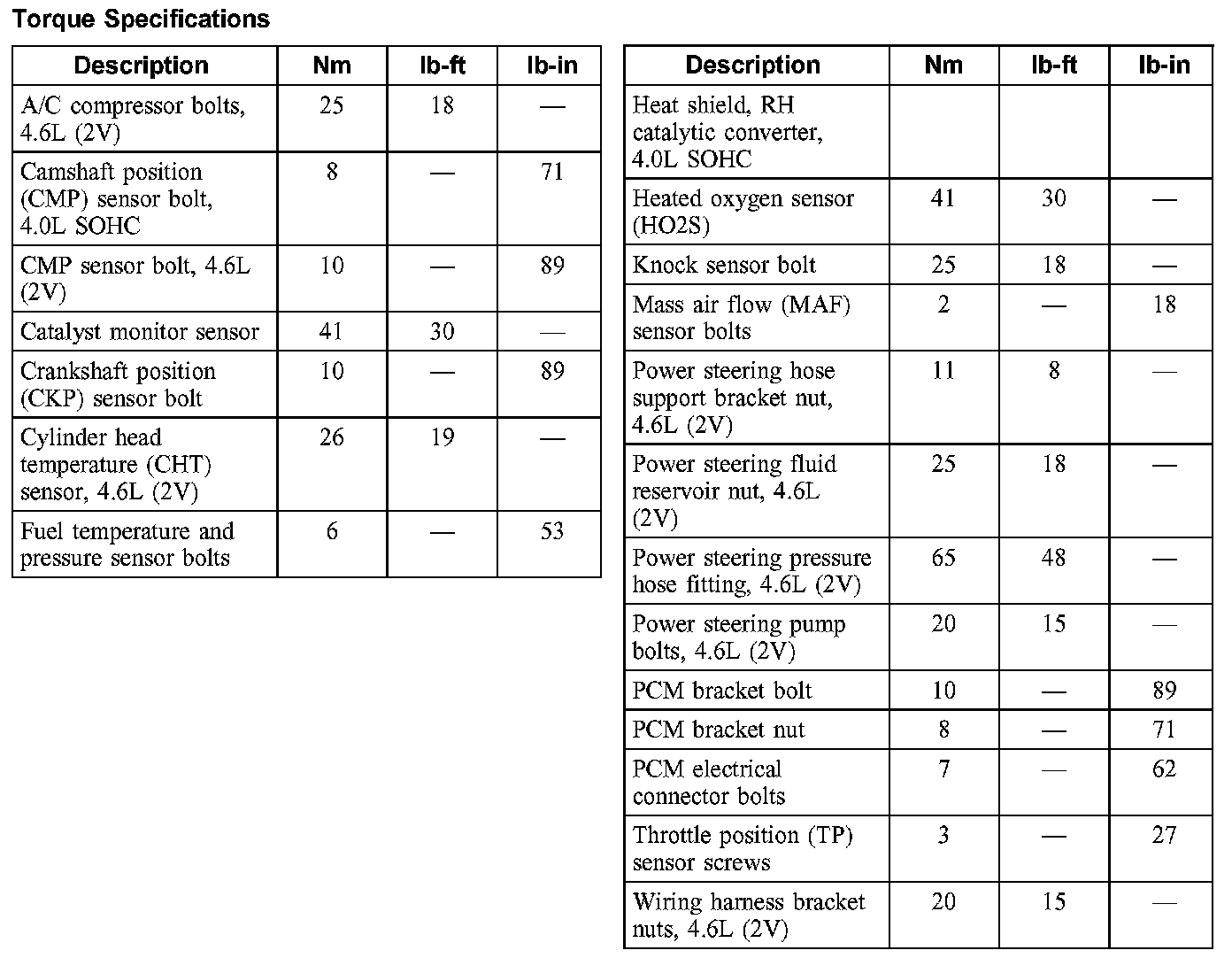 Torque Specifications: