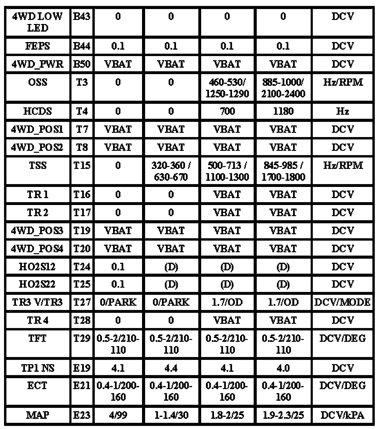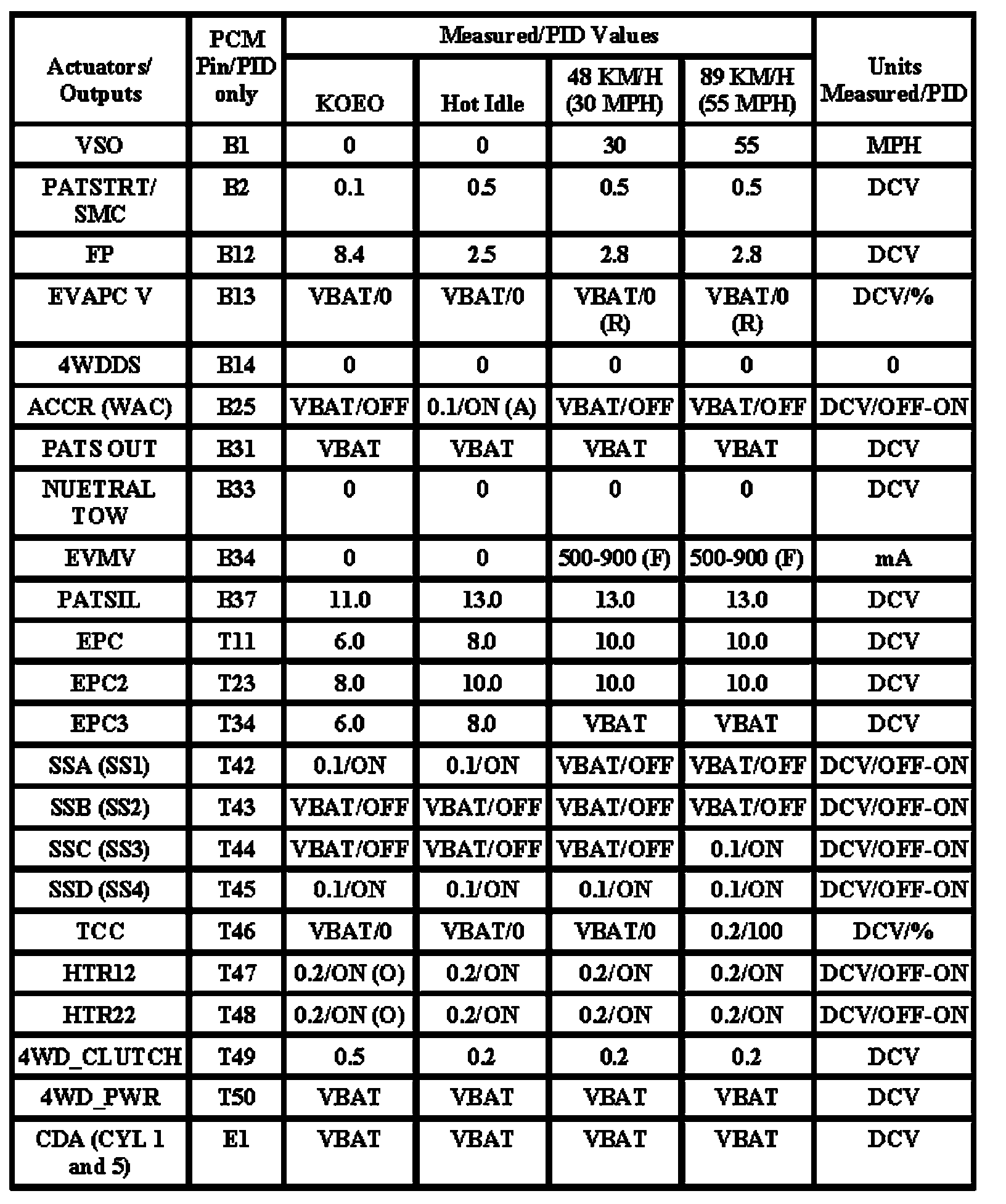 Note: All generic OBD readings under no load (PARK or NEUTRAL).