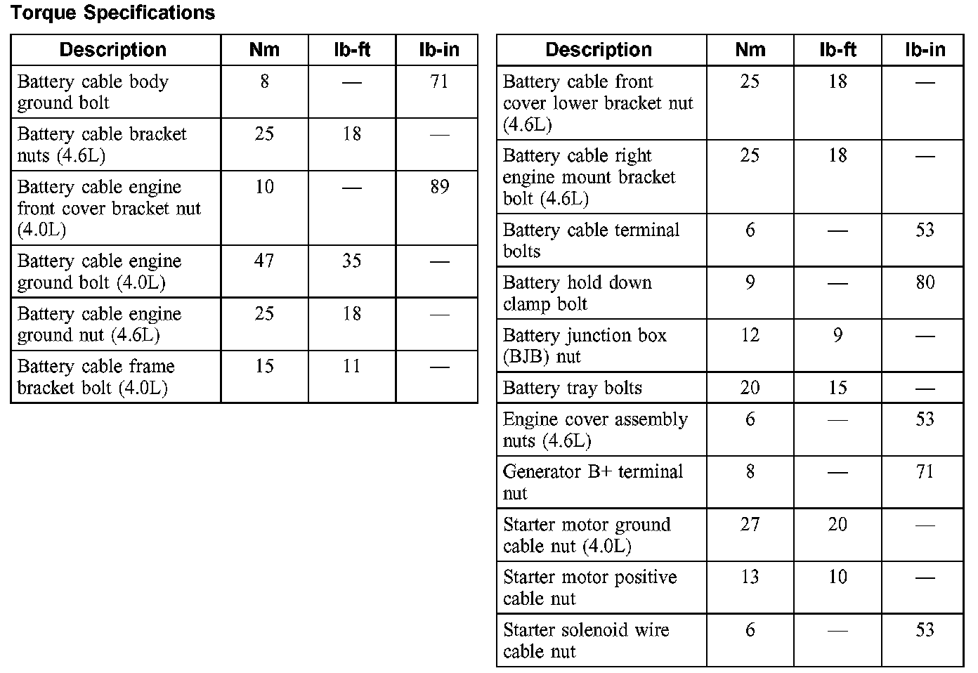 Torque Specifications: