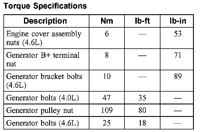 Torque Specifications: