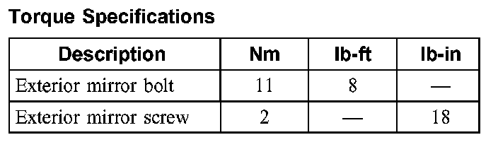 Torque Specifications: