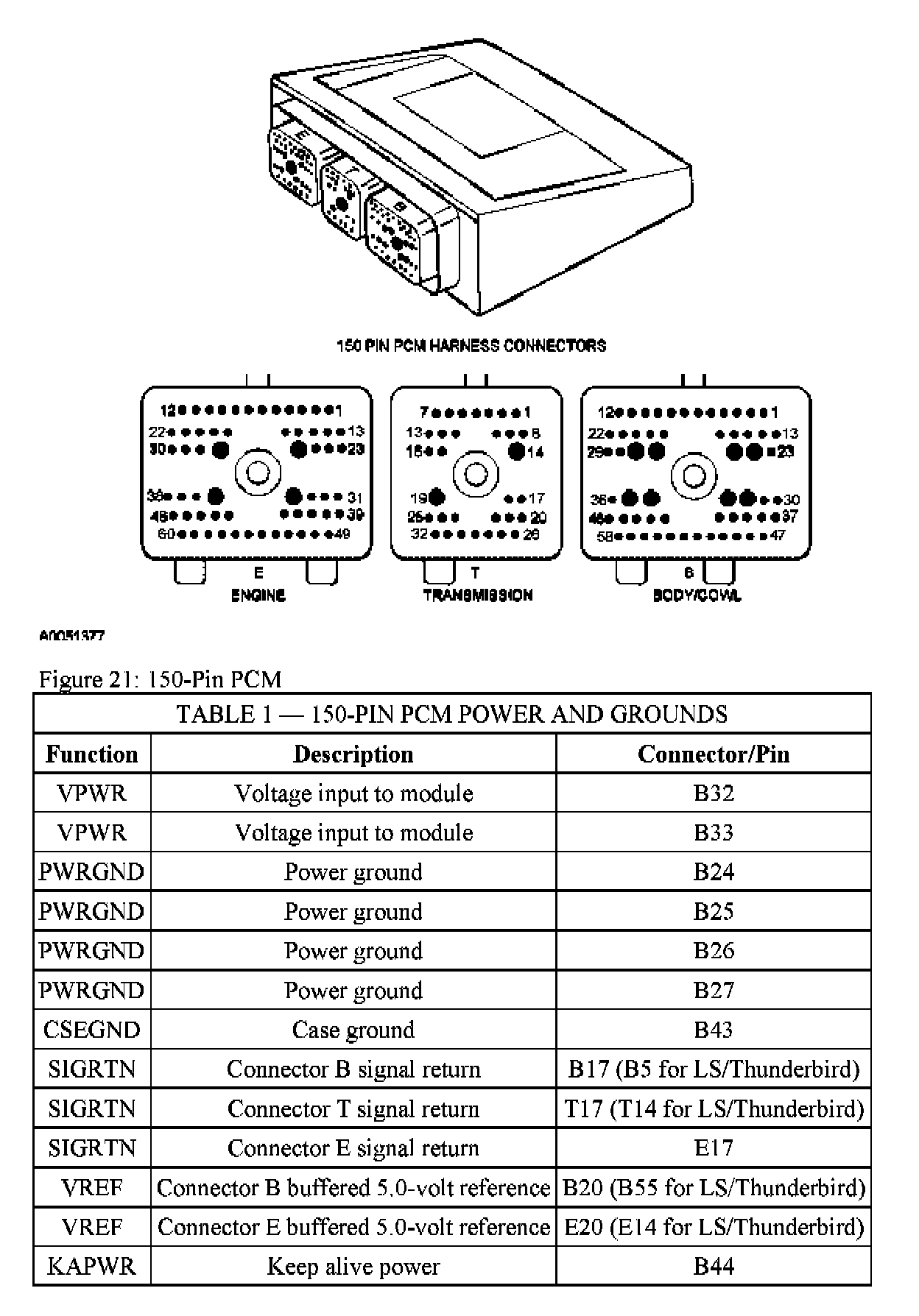 The center of the electronic engine control (EEC) system is a microprocessor called the PCM. The PCM receives input from sensors and other electronic components (switches relays). Based on the information received and programmed into its memory the PCM generates output signals to control various relays solenoids and actuators. There are several different types of PCMs in use for this model year. Refer to the Vehicle PCM Application Table below for PCM types and their applications.