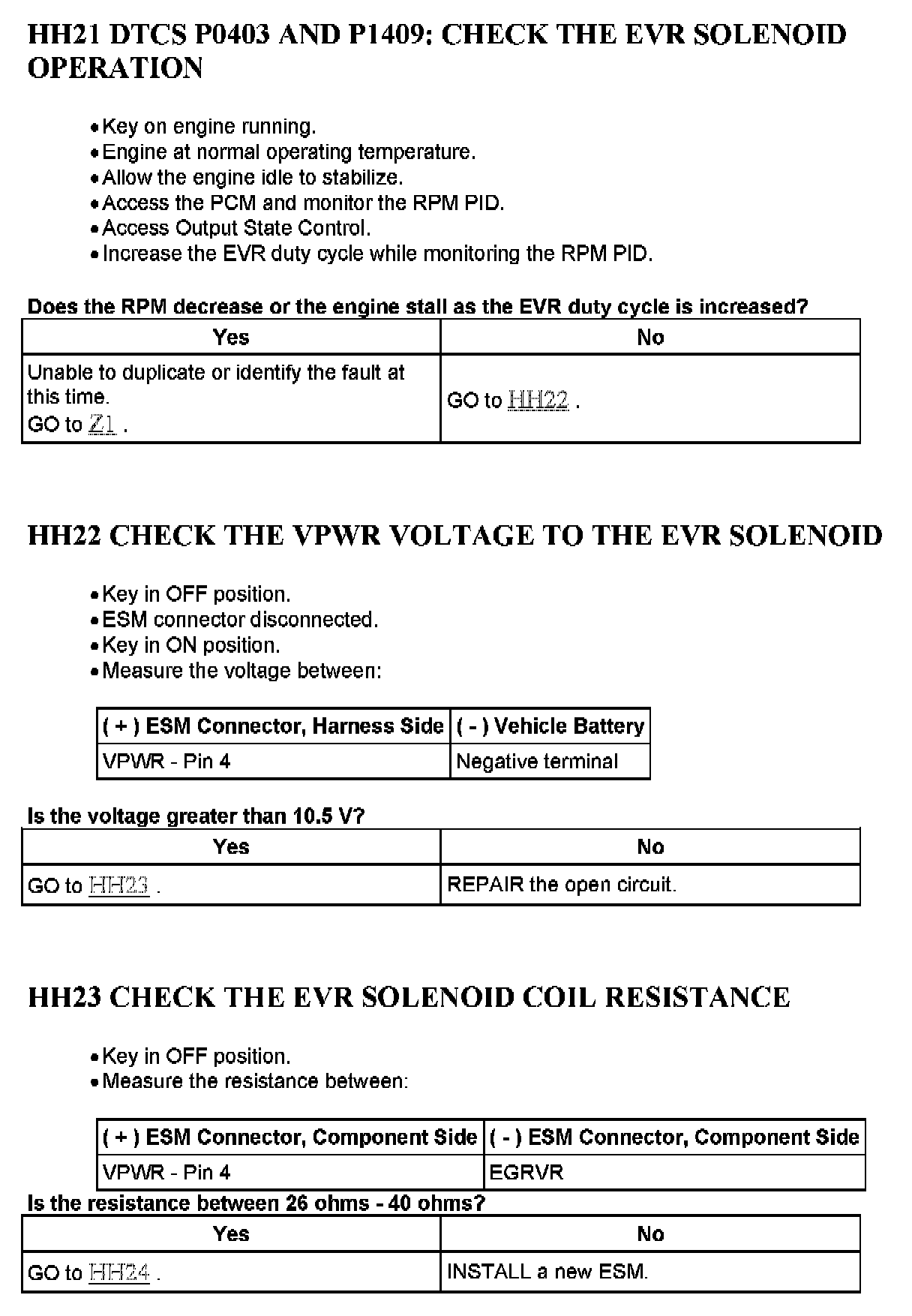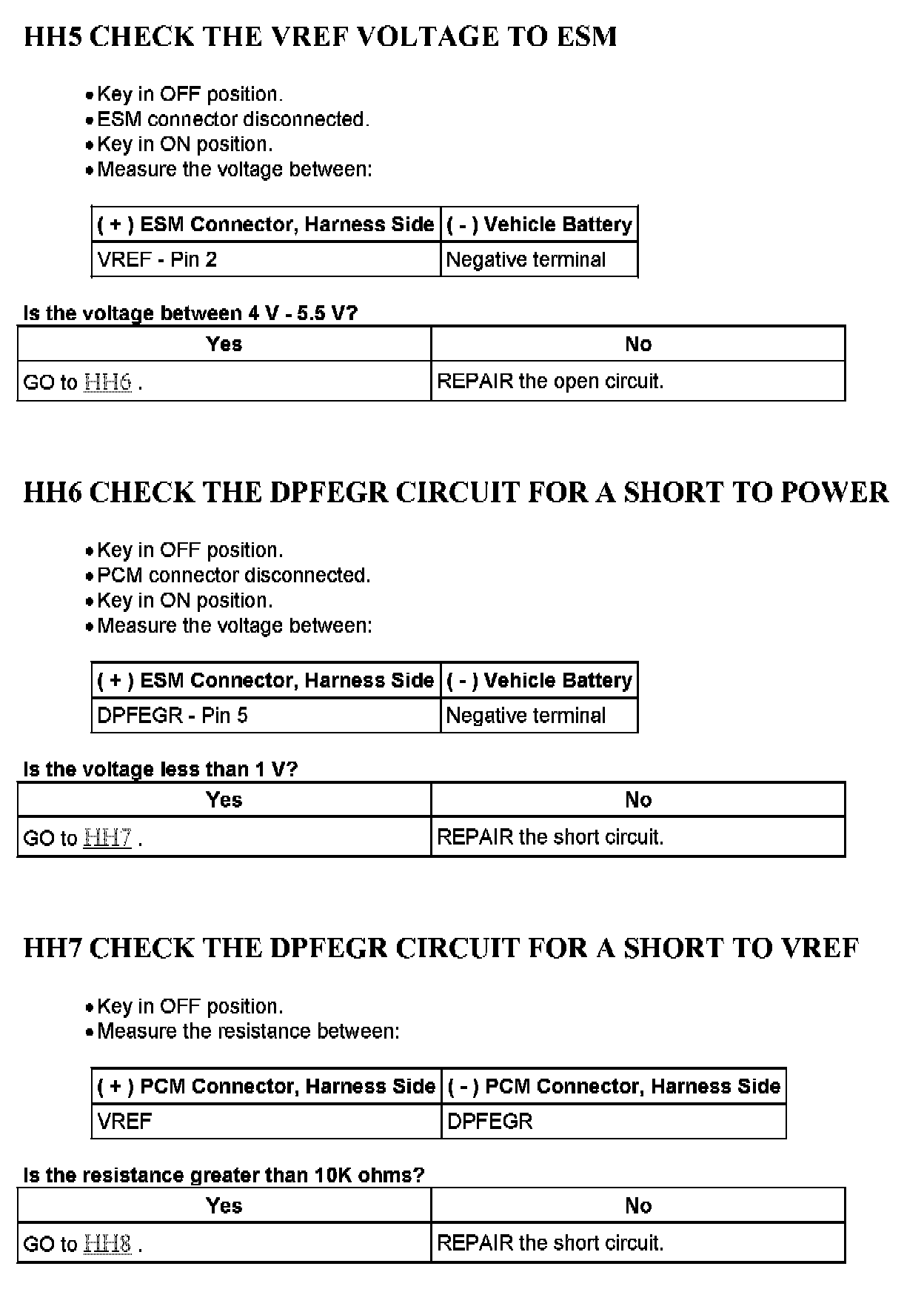 Home >> Ford >> 2005 >> Focus L4-2.3L VIN Z >> Repair and Diagnosis >> Powertrain Management >> Computers and Control Systems >> Testing and Inspection >> Pinpoint Tests >> Tests HH: Exhaust Gas Recirculation System Module (ESM)