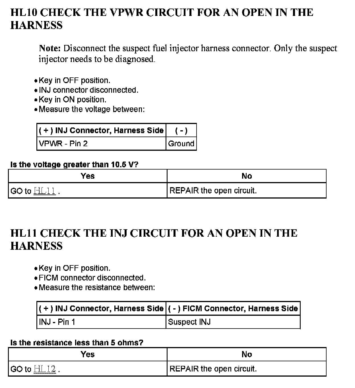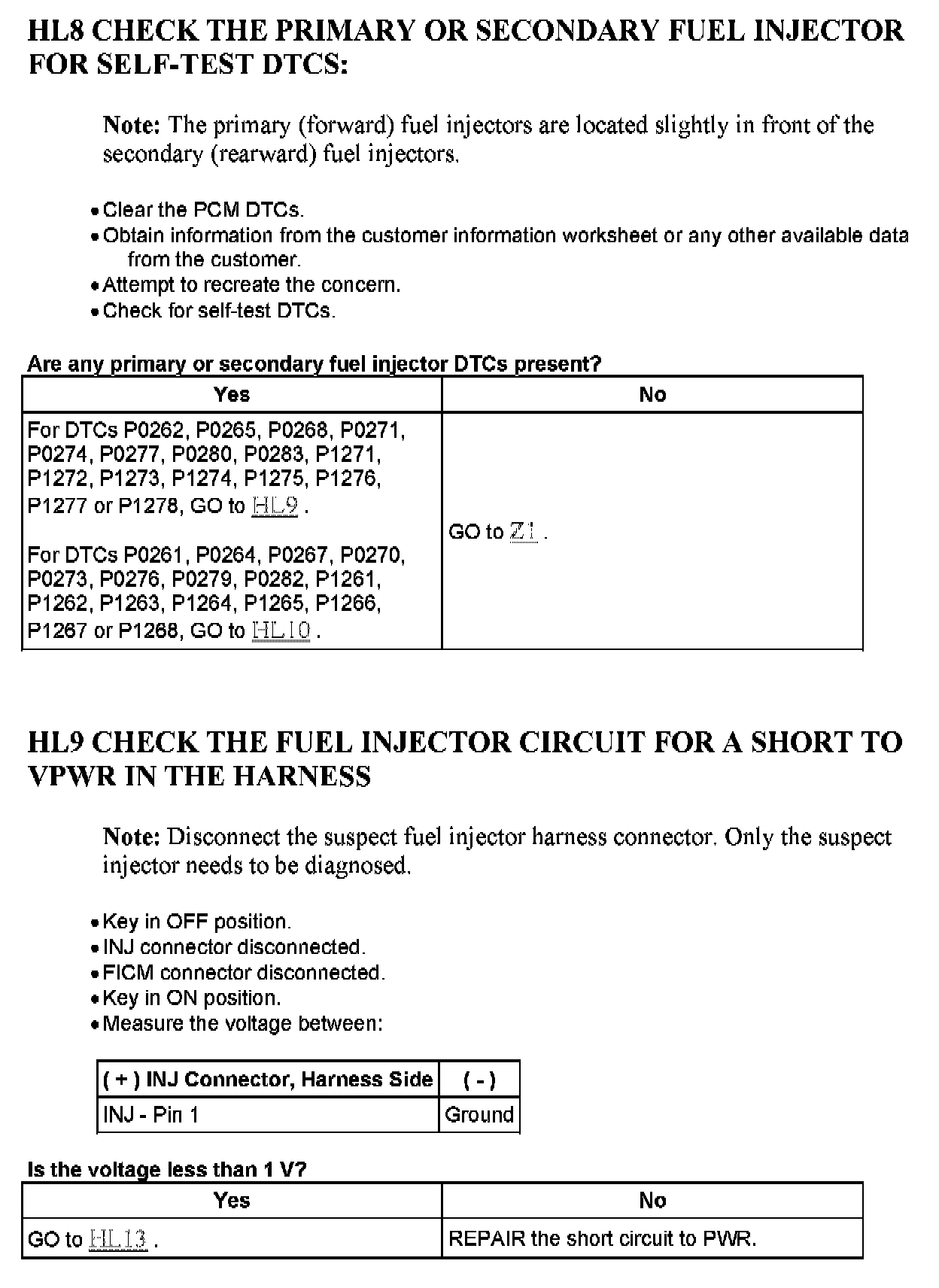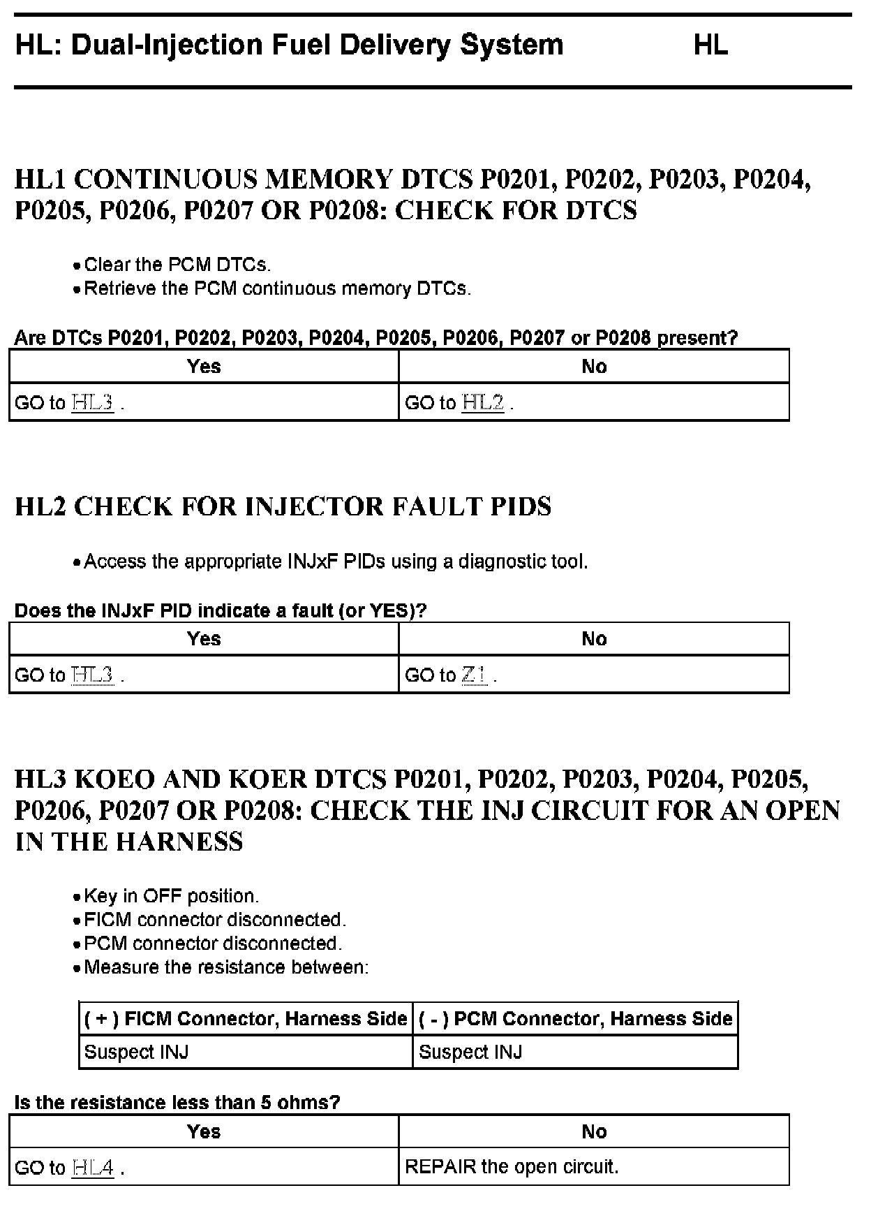Home >> Ford >> 2005 >> Focus L4-2.3L VIN Z >> Repair and Diagnosis >> Powertrain Management >> Computers and Control Systems >> Testing and Inspection >> Pinpoint Tests >> Tests HL: Dual-Injection Fuel Delivery System