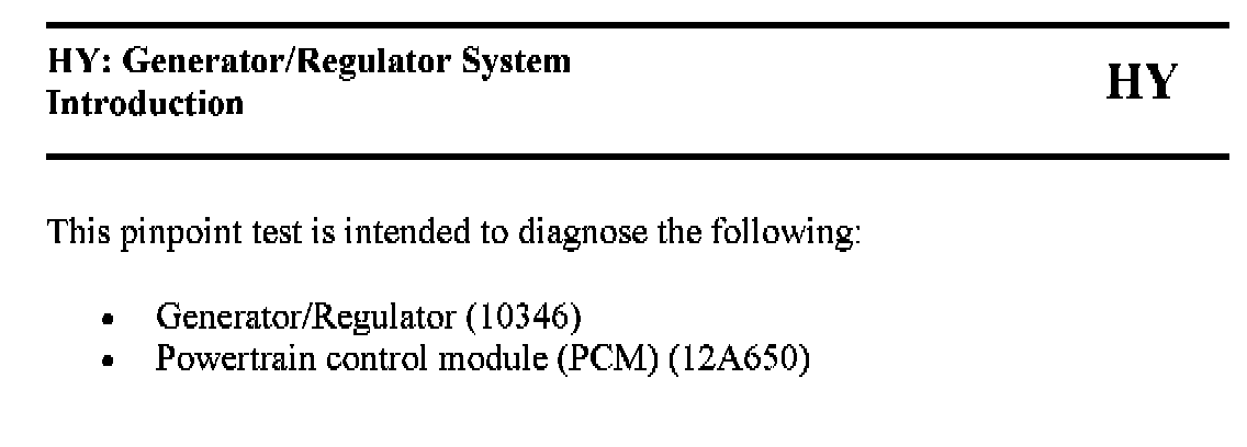 PINPOINT TEST HY: GENERATOR/REGULATOR SYSTEM
