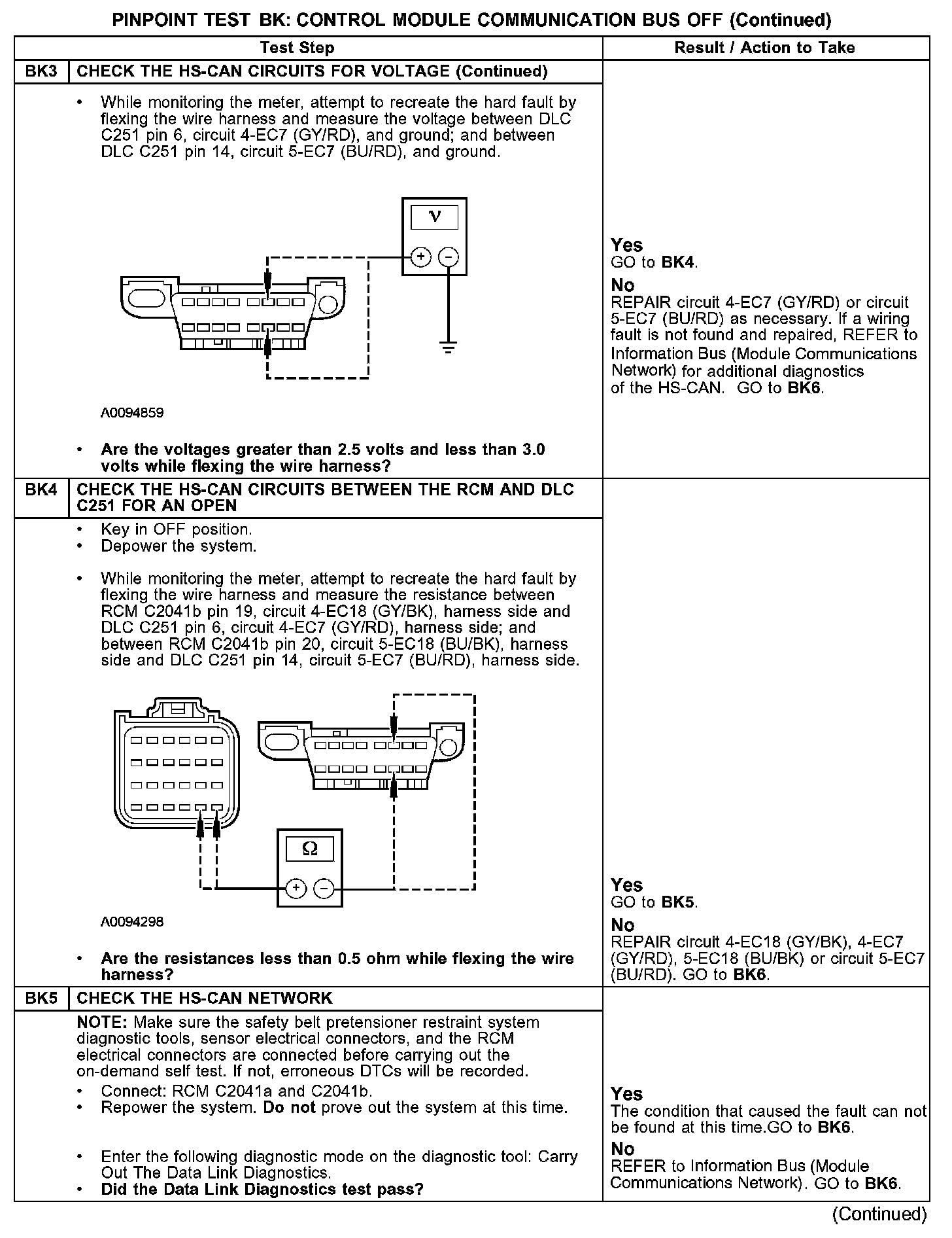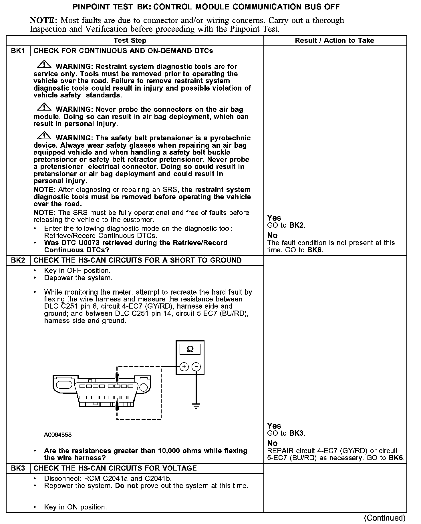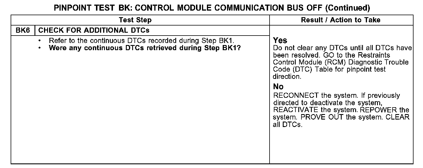 PINPOINT TEST BK: DTC U0073 - CONTROL MODULE COMMUNICATION BUS OFFBK1-BK3: