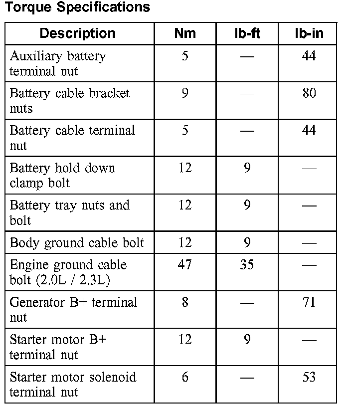 Torque Specifications: