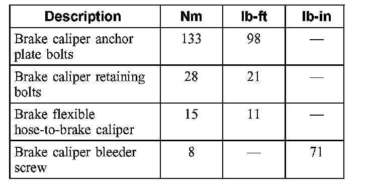 Torque Specifications, Front