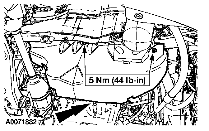 - Remove the engine heat shield attaching bolts.