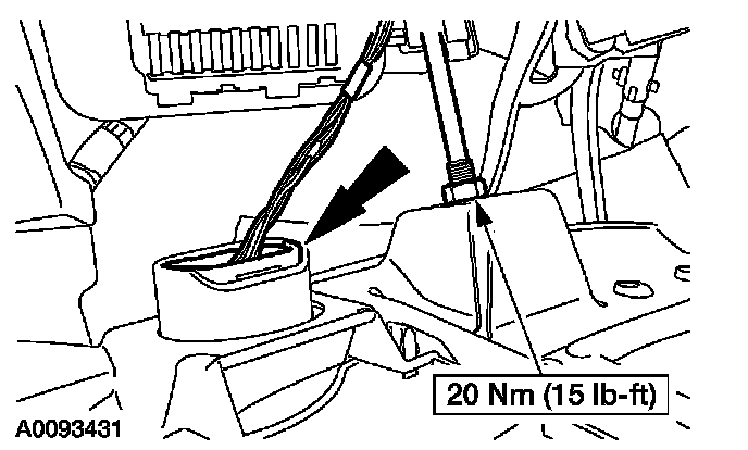^ Remove the instrument panel lower panel bolts.