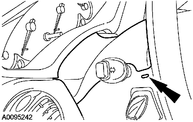 ^ Loosen the hood release cable nut.