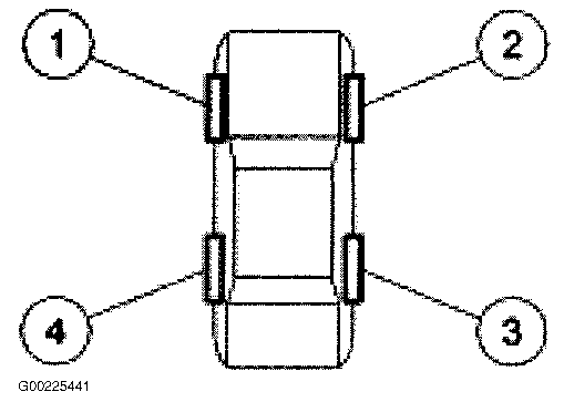 The tire pressure sensor training procedure must be done on a single vehicle, in an area without radio frequency (RF) noise. RF noise is generated by electrical motor and appliance operation, cellular telephones and remote transmitters, power inverters and portable entertainment equipment.