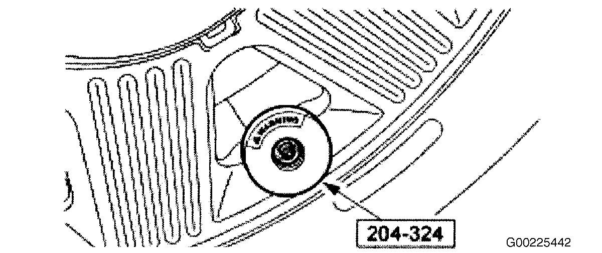- The horn will sound once and the TPMS indicator will flash if train mode has been entered successfully (if equipped, the message center displays "TRAIN LF TIRE"). Place TPM Activation Magnet (204-324) on the valve stem of the left front tire pressure sensor. The horn will sound briefly to indicate that the tire pressure sensor has been recognized by the TPMS module. See Fig 1 and Fig 2 .