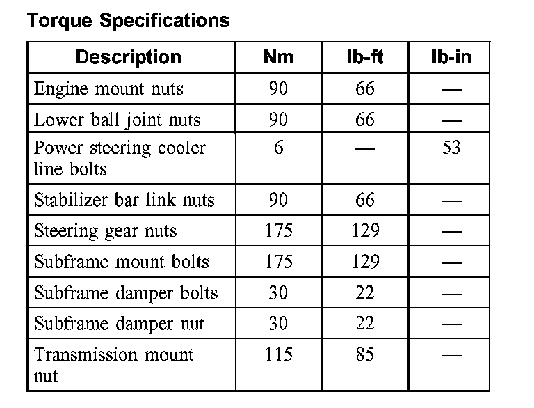 Torque Specifications: