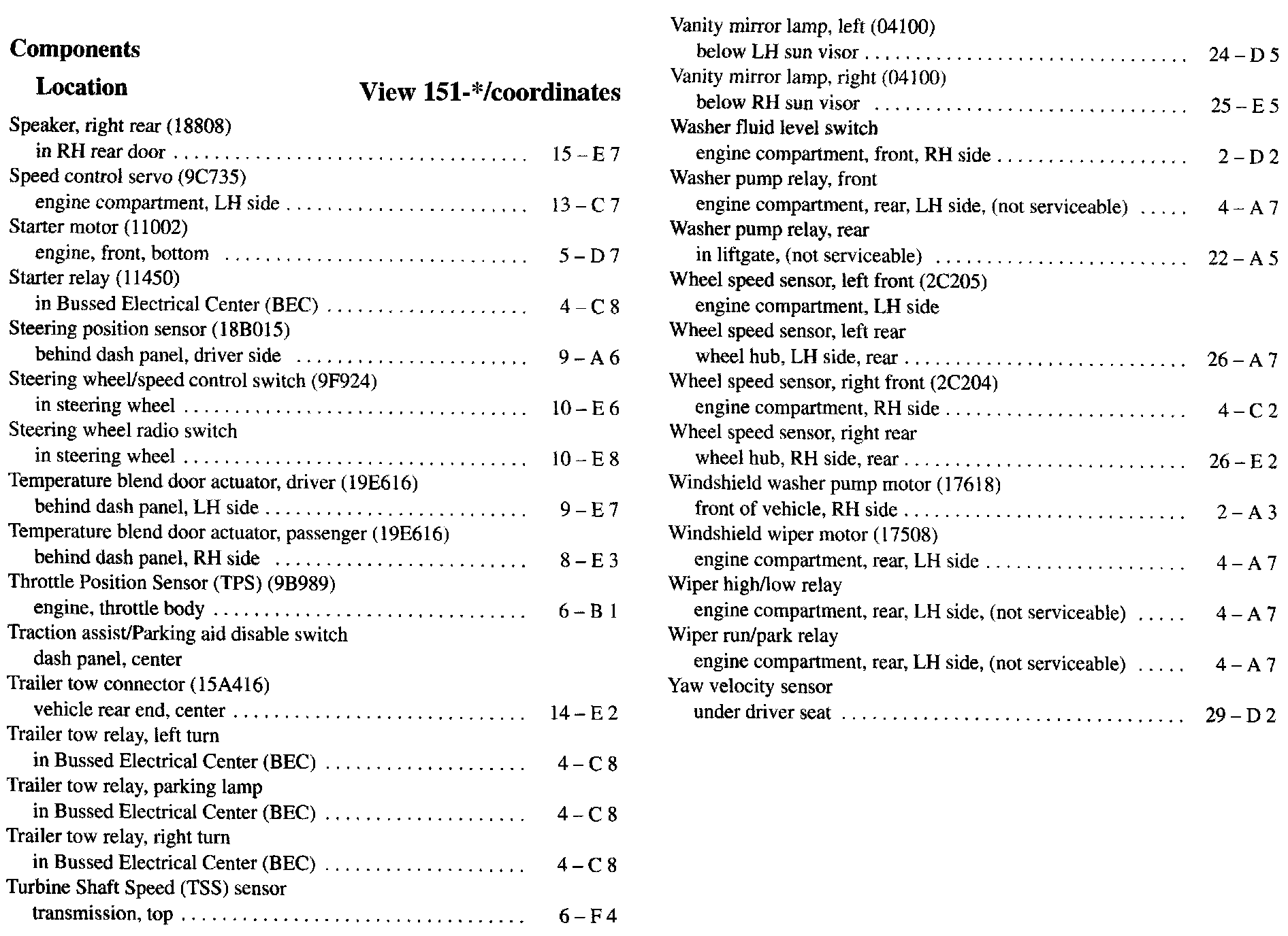 PLEASE NOTE: If a link on the Component Location Index to a View is not provided, that means that the Component and/or View in question does NOT apply to the vehicle model selected.