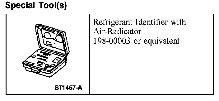 1. NOTE: An A/C refrigerant analyzer must be used to identify gas samples taken directly from the refrigeration system or storage containers prior to recovering or charging the refrigerant system.