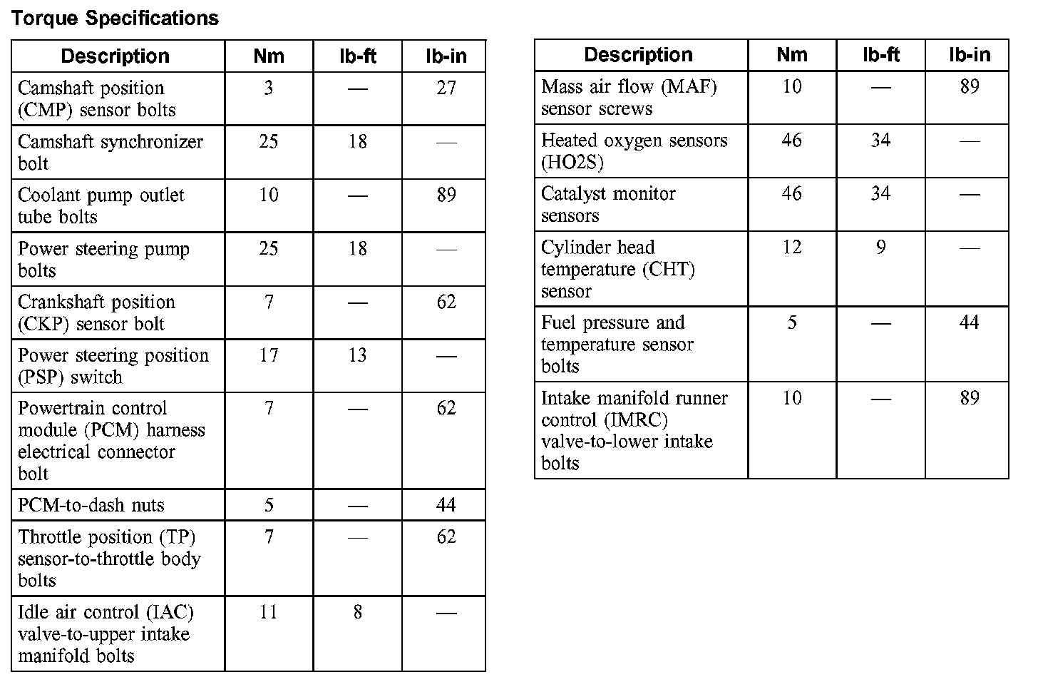 Torque Specifications: