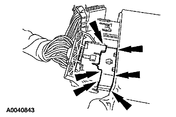 - When installing a new restraints control module (RCM), always make sure the correct RCM is being installed. The RCM 40-pin connector is keyed differently for vehicles with safety canopies and side air bags than the 40-pin connector for vehicles without safety canopies and side air bags. Do not force the 40-pin connector onto the RCM. If the connector is forced onto the RCM, damage to the RCM and/or connector will occur.