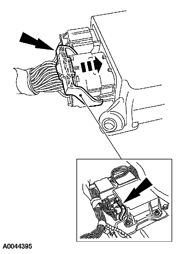 4. Disconnect the large restraints control module (RCM) electrical connector.