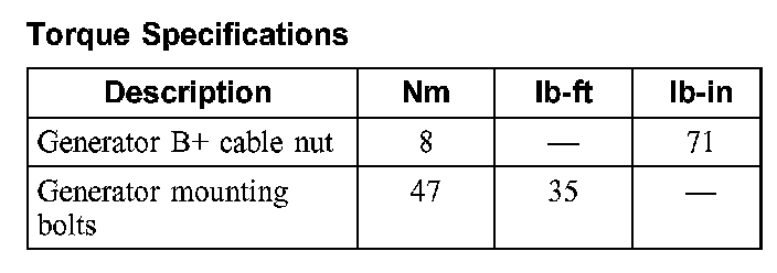 Torque Specifications: