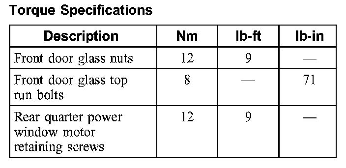 Torque Specifications: